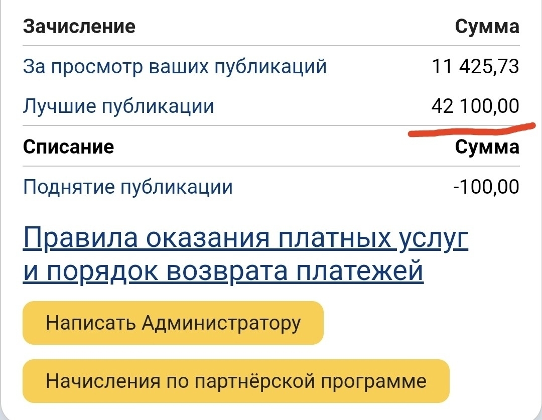 Я заметил, что больше всего денег я получил за победу в конкурсе лучших публикаций!