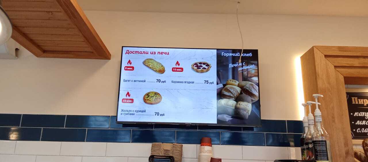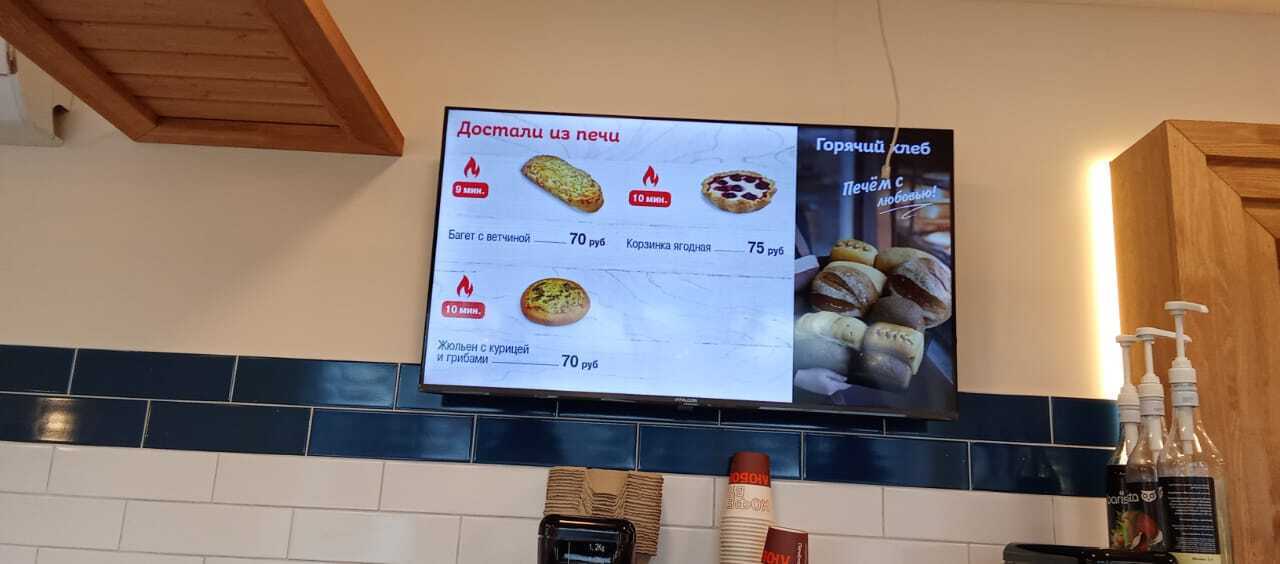 "Хлебница" теперь оснащена современным оборудованием, здесь существуют специальные подогревающие лампы, стоит микроволновка, которой может воспользоваться каждый, но особенно мне нравится монитор, на котором отображается, какая продукция только что из печи.