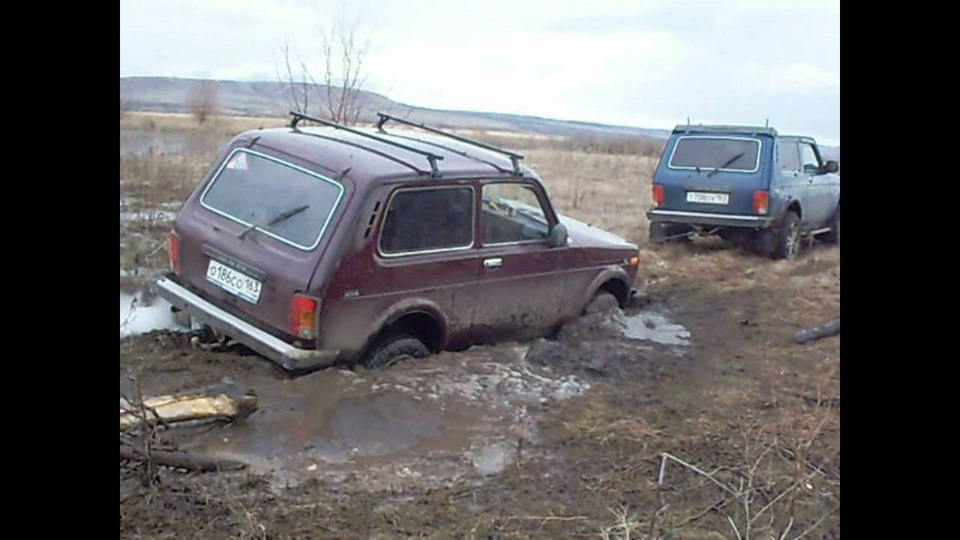 Садился я на днище в болоте. Надо было доставить к древнему городищу на песчаном берегу озера артиста с моей фотоаппаратурой для съёмки. Раскачал Ниву и выехал. Вернее, как бы выпрыгнул. Рядом на сухом берегу стояли иномарки-внедорожники. Ни один не рискнул ехать через это болото. И они, разувшись, почапрали к озеру через трясину пешком. А уж тем более, никто не рискнул вытаскивать. Потому что знают: Нива настоящий внедорожник, а у них одни понты. Помочь не помогут, только застрянут. Кстати, на обратном я проехал это место легко и быстро. Иномарочники тоскливо смотрели мне вслед.