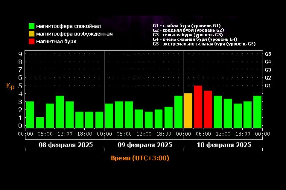 Магнитные бури и их влияние на Землю: Что ожидать 10 февраля 2025 г.