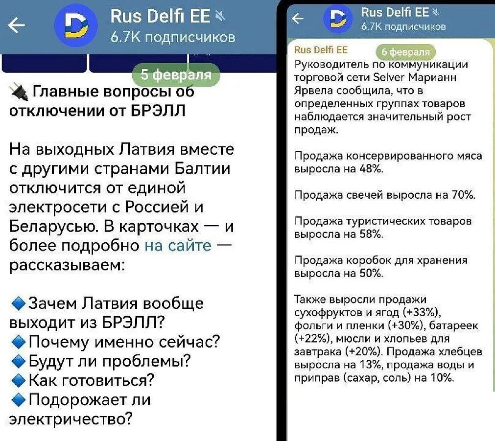 В выходные дни произошло историческое отключение от надоевшей системы электроснабжения и, освободившиеся от оков Латвия сразу приготовилась синхронизироваться с европейской системой ENTSO-E, где электроэнергия в несколько раз дороже и её в несколько раз меньше. Зато латыши стали свободными, как сопля в полёте.