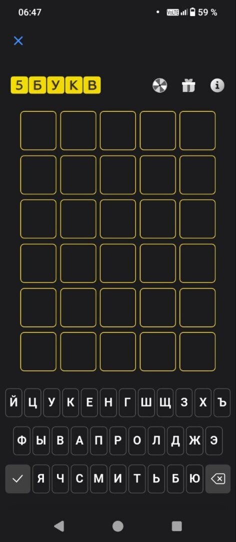 Правила данной игры довольно просты. Нужно угадать слово из 5 букв. Шесть попыток. Изначально не известно ни одной буквы. Если угадываете букву и место её расположения, она обозначается желтым цветом; если буква в слове есть, но в другом месте, то белым цветом, если буквы нет вообще – серым цветом. Слово даётся для угадывания 1 раз в сутки.