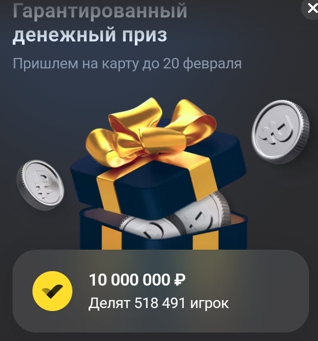 Тем, кто принимал участие и набрал необходимые 40 билетов для получения гарантированного приза до 20 февраля переведут 19,29₽))
