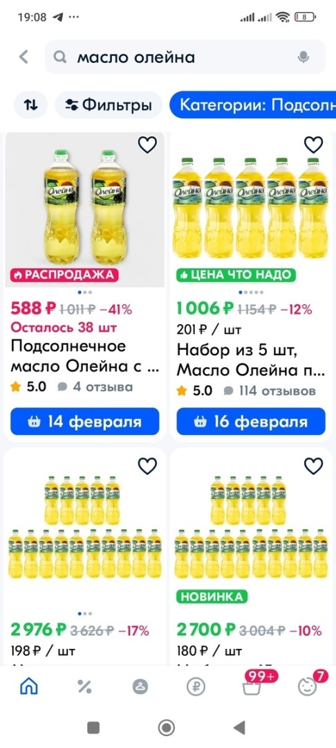 Давайте сейчас сравним цены. Например, масло "Олейна" в супермаркете и розничном магазине я покупаю за 139–180 рублей. Смотрим на "Озоне" (фото выше).