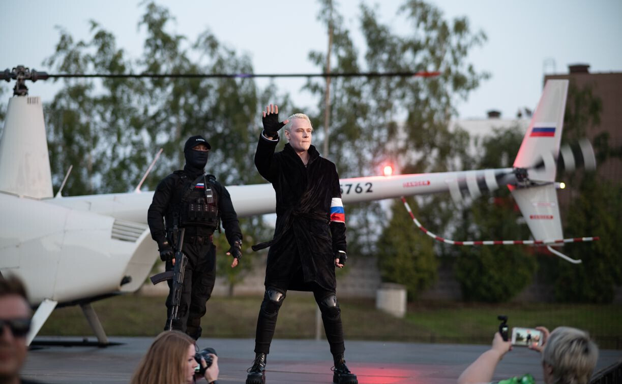 Данный кадр взят из клипа "Мы на Красной Площади". Также певец был в берцах, а еще эта повязка на руку и знаки руками (не только в клипе, но и на выступлениях), очень похожие на ту самую немецкую "зигу" слишком... так сказать, очевидные.