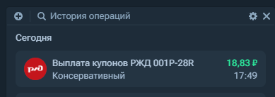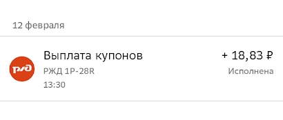 У меня 4 РЖД 001Р-28R на 3 счетах. По 18.83 руб на 1 шт. пришло. Выплаты каждый месяц.