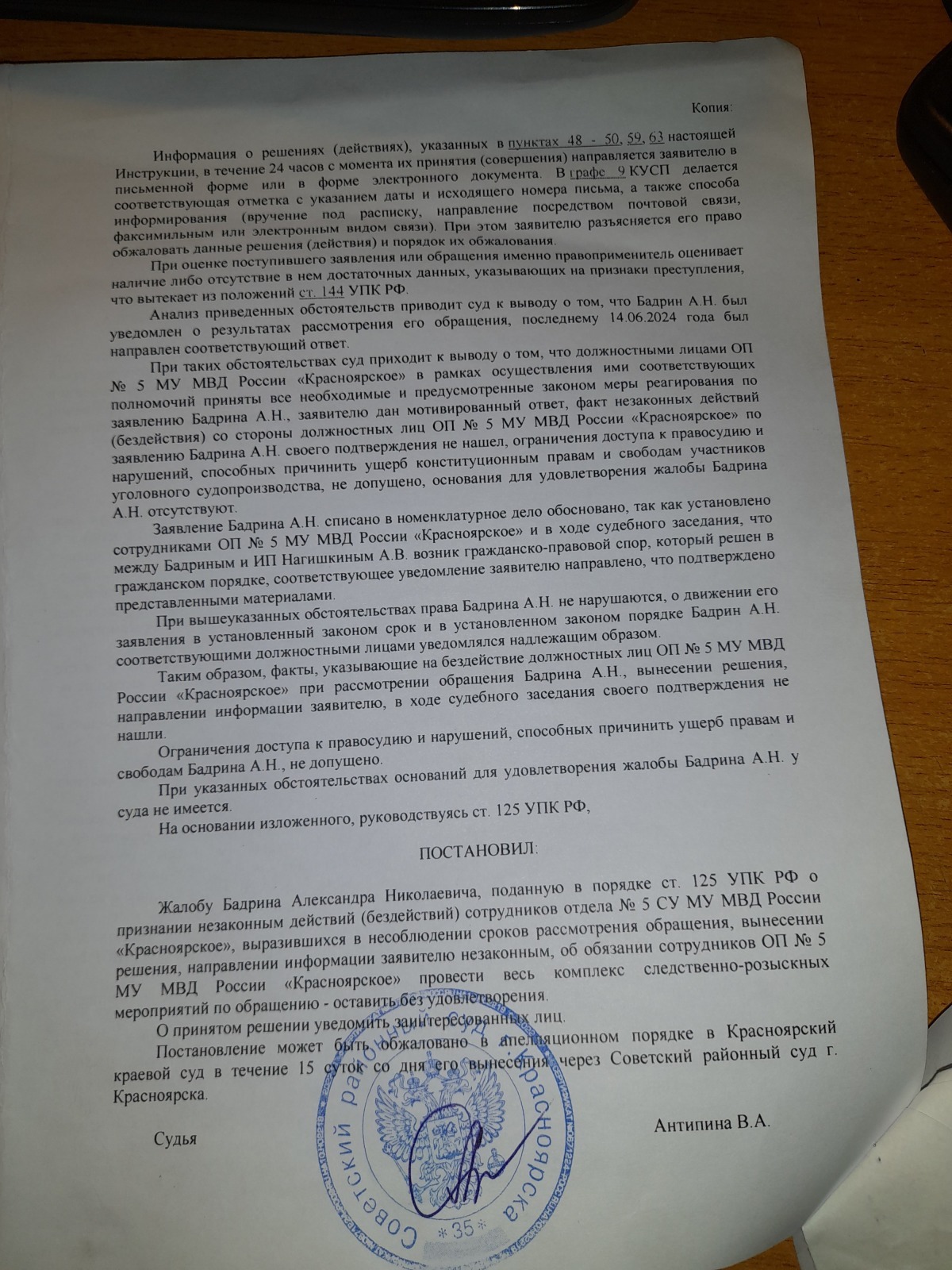 Вот так следствие покрывает преступления, прокуратура покрывает следствие , а суд покрывает обоих ,подана апелляция