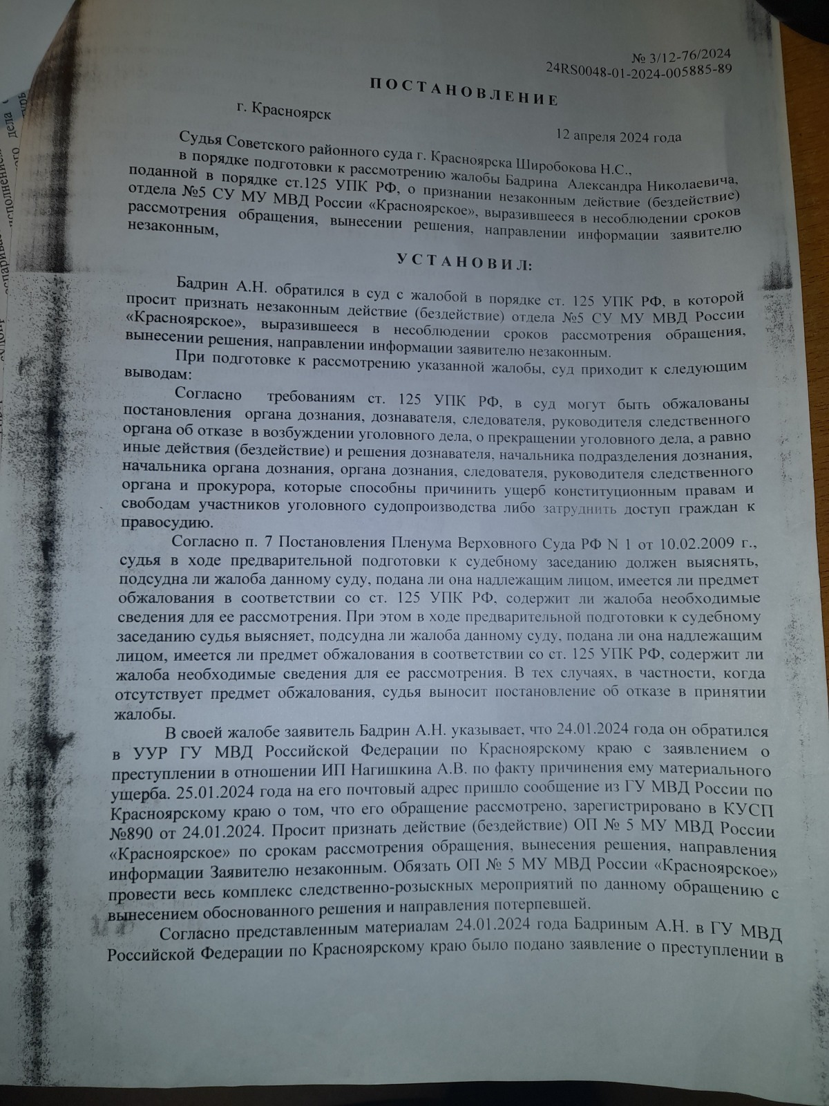с указанием , что нужно сделать,естественно следствие НИЧЕГО НЕ ДЕЛАЛО. Прокуратура Советского района чихать хотела на надзорные функции и судья Антипина до последнего тянула с пересмотром жалобы вынесла вот такой вердикт