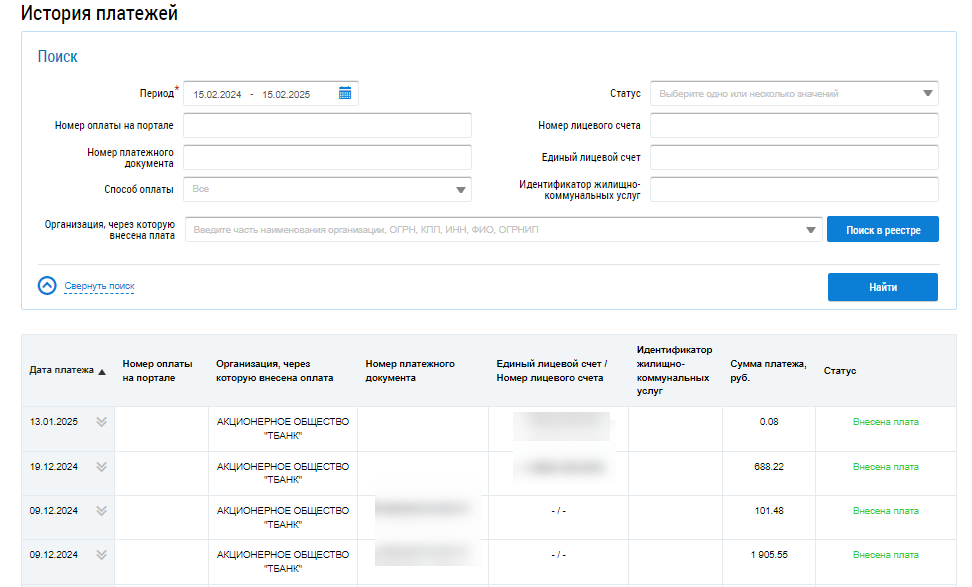 -Данные об оплате хранятся на стороне ГИС ЖКХ и Вашего Банка .