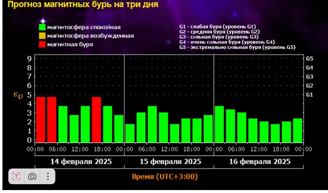 Магнитные бури 15, 16 и 17 февраля 2025: Магнитные бури испортят выходные?Когда же будет штиль?