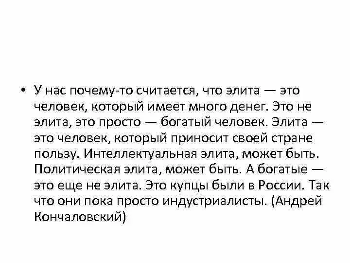 Элиты формируют общественное мнение. В любом тоталиризованном государстве, представителей элит уничтожают и гнобят придержащие их власти. Они фальсифицируют само понятие - элита, заменяя его ложными понятиями.