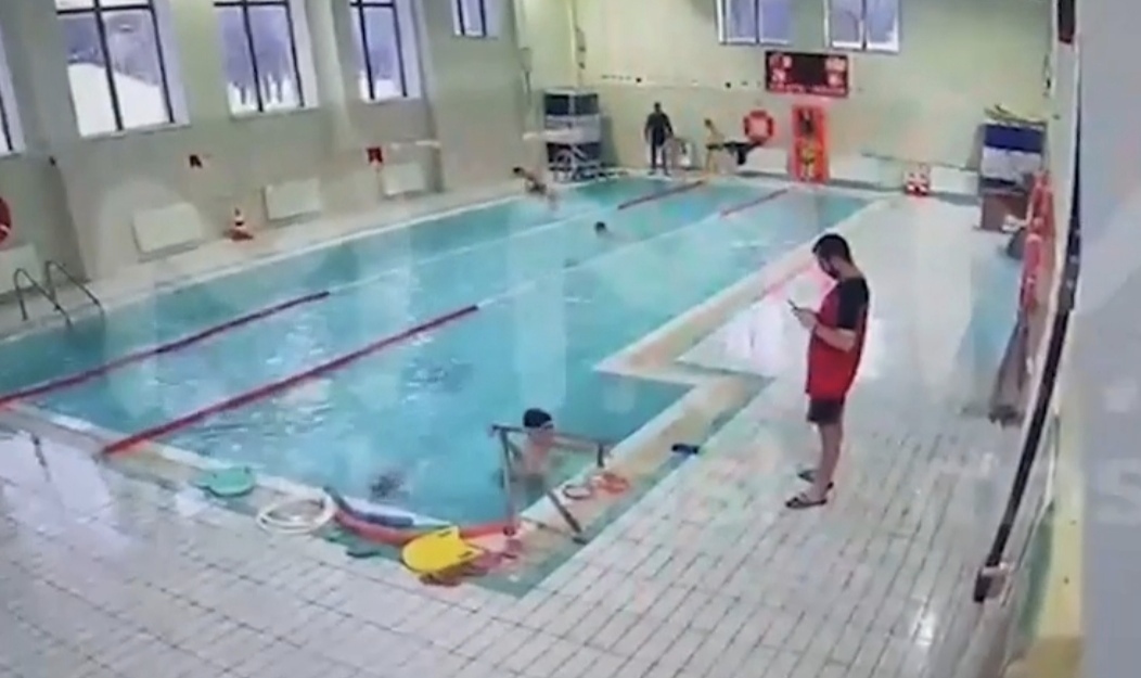 На кадрах с камер наблюдения видно, как тренер ходит вдоль бортика, не отрывая глаз от экрана телефона. В это время группа детей играет у лестницы в бассейне. Никто и не заметил, как один из них —маленький мальчик — начал тонуть. Он барахтался в воде, пытаясь привлечь внимание, но тщетно. Мальчик ушёл под воду и провёл там больше двух минут.