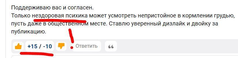 Лайки под моим комментом показывают, что нас, здоровых, которых не возбуждает вид груди кормящей женщины, все таки больше!