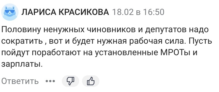 Может надо поскорее заменить бездельников-чиновников и депутатов? От них пользы никакой, только вред!