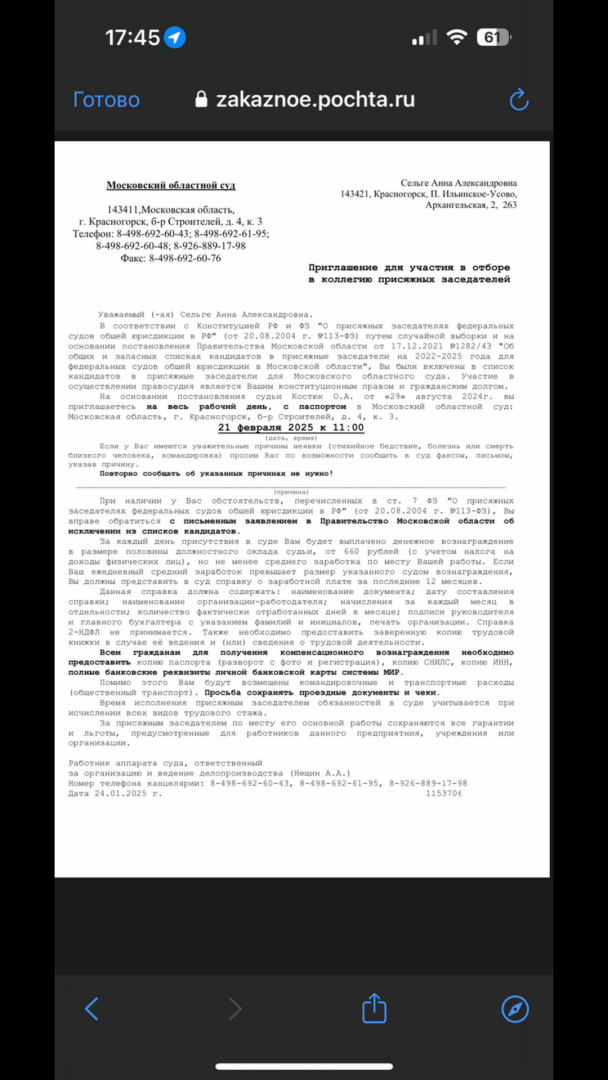 Приглашение для участия в отборе в коллеги присяжных заседателей