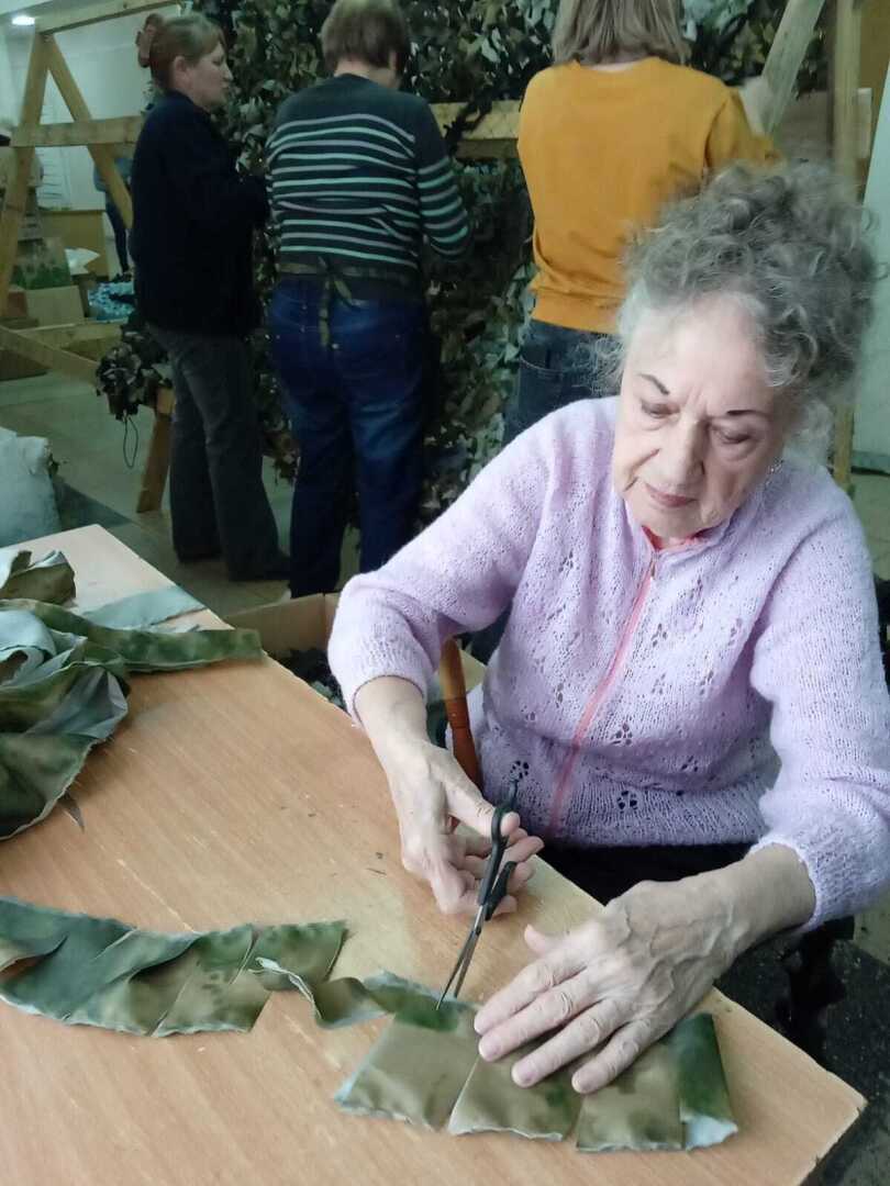 Всё просто. Она с такими же старухами, как и сама, в подвале соседней многоэтажки целыми днями вяжет маскировочные сети.