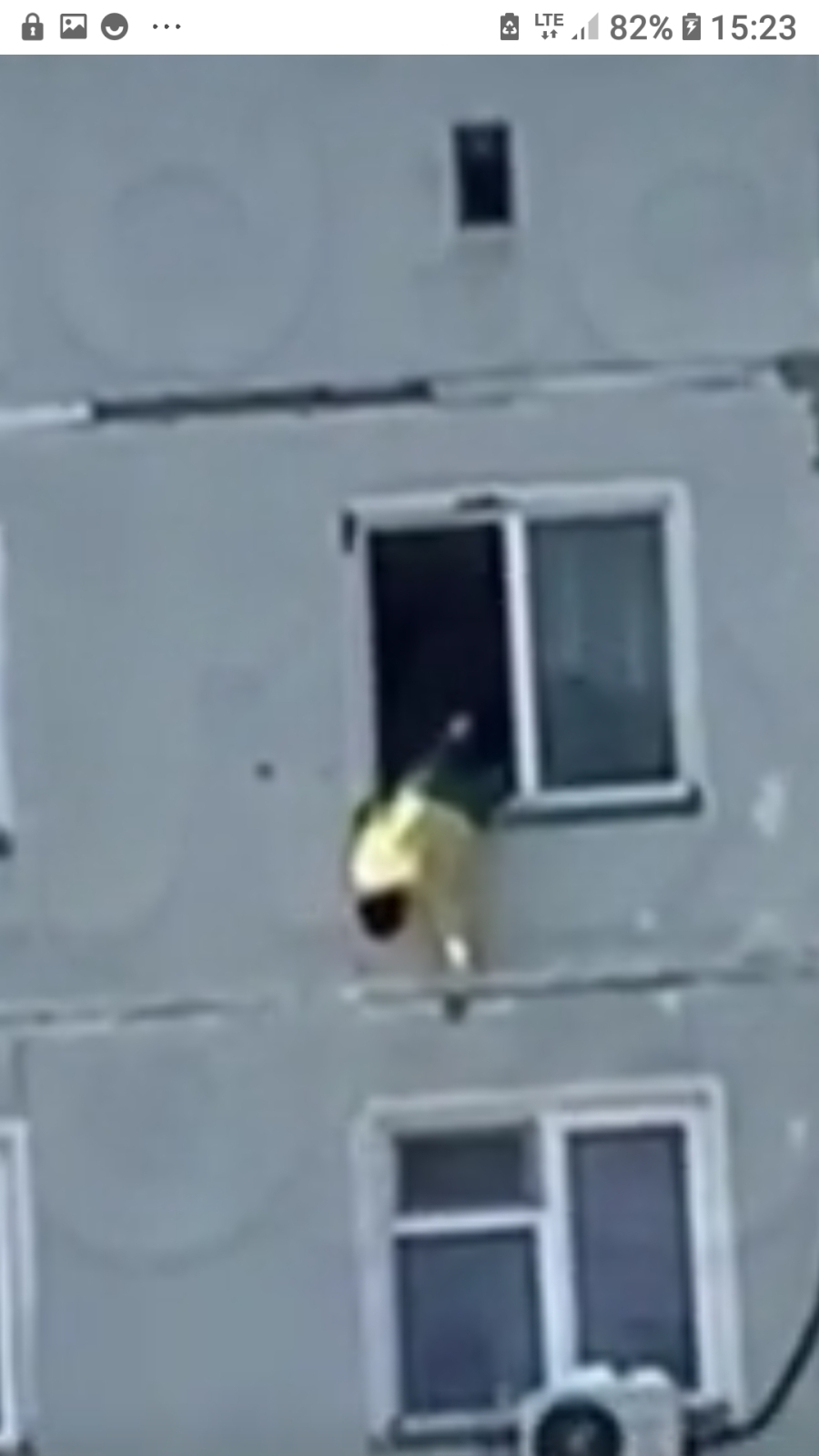 На мытьё окна совершенно не похоже! На моём мелком экране телефона похоже больше, что "пенсионерка" межпанельный шов снаружи обрабатывала, куда-то тянулась? Скорее всего, работник ЖКХ...
