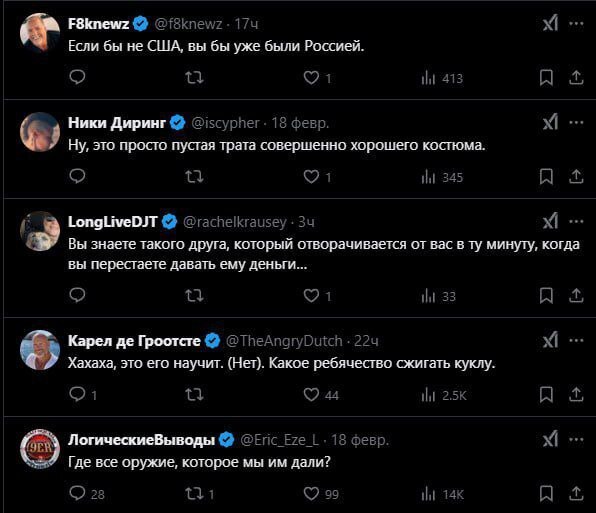 👔 В своем недавнем посте Трамп назвал Зеленского «диктатором без выборов». По его словам, просроченный заставил США «потратить 350 млрд долларов на войну, которую невозможно выиграть».