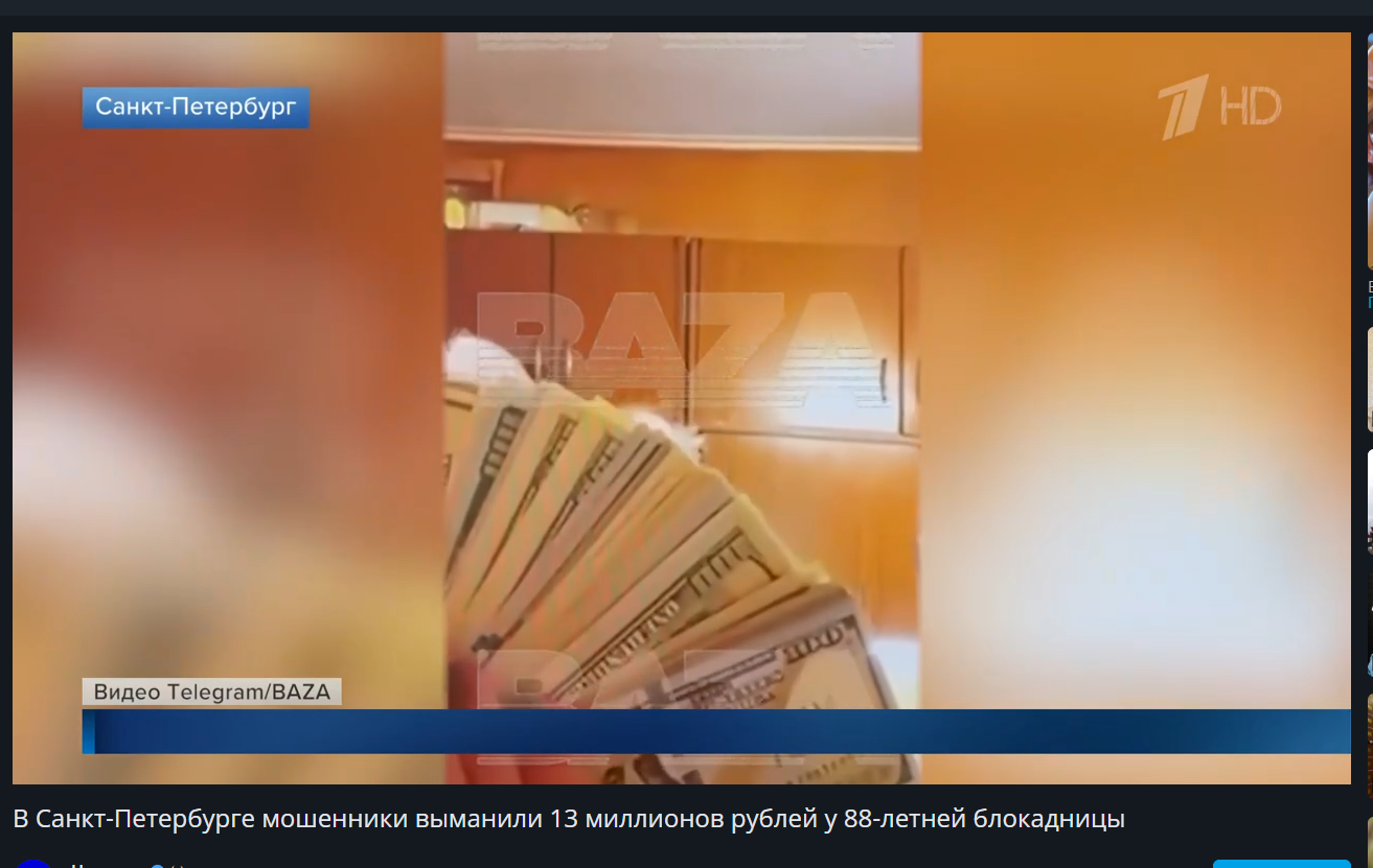 Причём по указанию куратора свои действия она записывала на видео и за ней наблюдали по видеосвязи, какие деньги, как пересчитываются. Родственники были в квартире и не смогли догадаться о мошеннической схеме. По итогу женщина лишилась 9 миллионов рублей и 40 тысяч долларов, суммарно более 13 миллионов рублей.