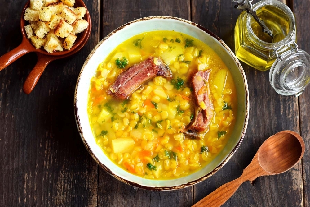 Гороховый суп на свинных копченых ребрышках
