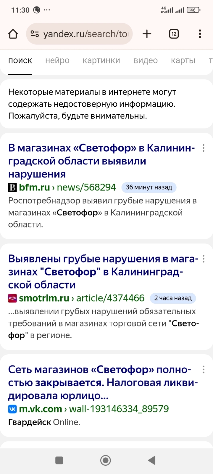 В Гвардейске: утром туда отправился знакомый, который с гордостью сообщил, что наш ближайший "Светофор" работает. Хотя в новостях пишут, что он закрыт.