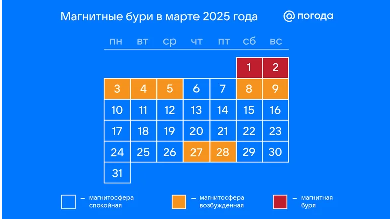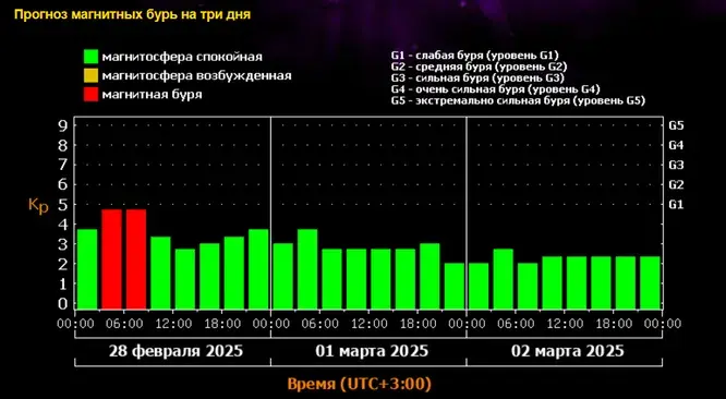 Расписание магнитных бурь по дням: прогноз на март 2025 года
