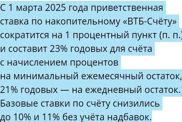 Ну а раз уж речь изначально зашла про ВТБ, добавлю и эту новость, что касается банковских вкладов - там также изменения с 1 марта: