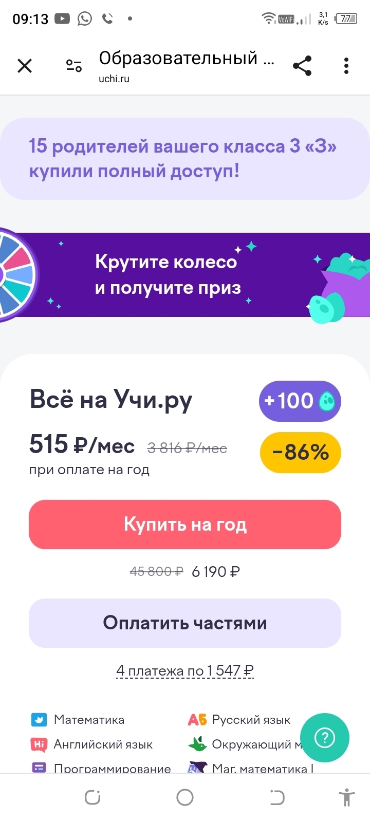 Обратите внимание на строчку невзрачного формата под яркой кнопкой "купить на год". Типичный развод на деньги под вкусным соусом. Вместо 45 800 всего 6190!