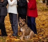 Немного о фотографии: Это обычный осенний день, фотоссесия моей сестры. На фото видно, что собака чипирована. Она сидит и спокойно с детьми фотографируется. И на вид, вроде добрая. Но на самом деле, это собака, на подает на детей младшего возраста. Отбирает сумки, сменку, рвет одежду. Случаев с укусами пока не было. Но это животное - оно не предсказуемо.