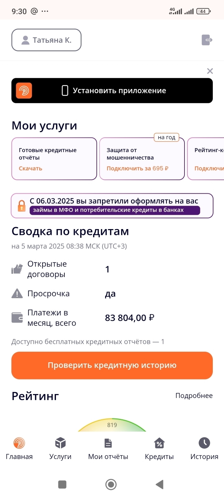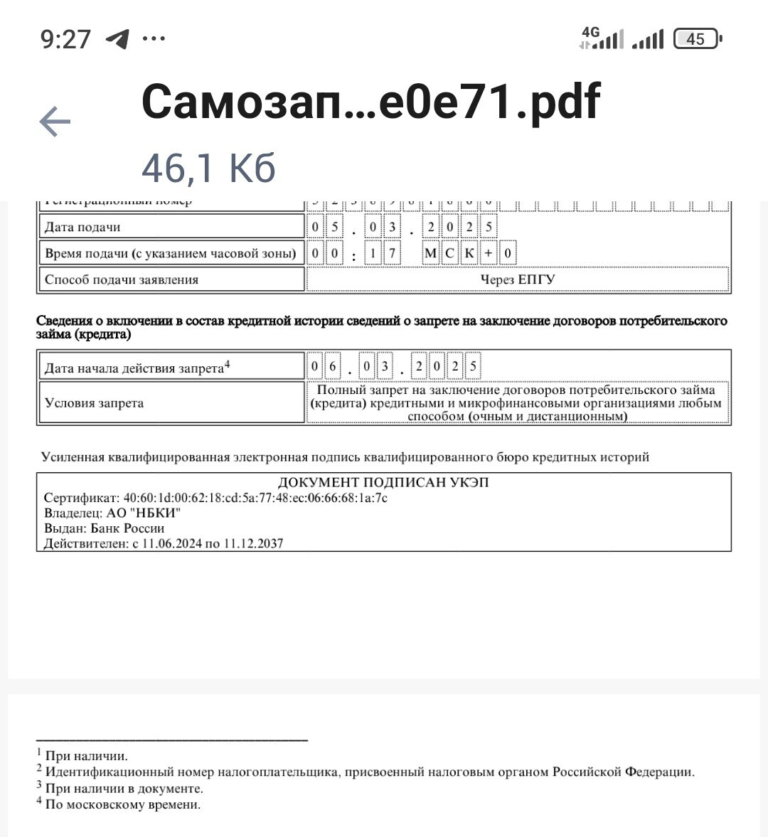 В это же утро уже появилась информация в моем рейтинге. То есть, все банки уже в курсе, что с 6.03 у меня самозапрет.