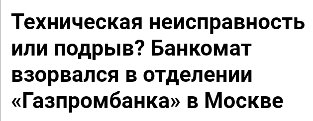 Техническая неисправность или подрыв? Банкомат взорвался в отделении «Газпромбанка» в Москве