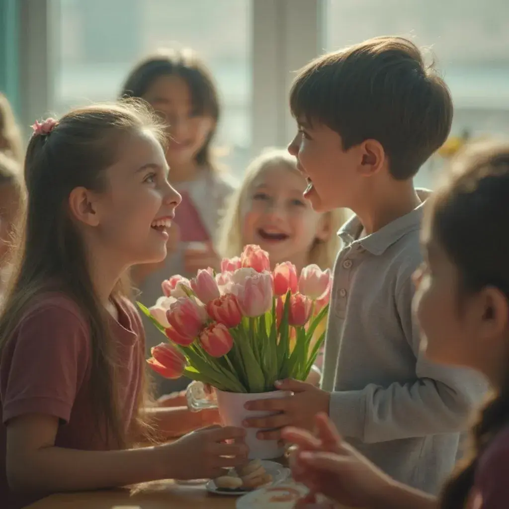 И вообще: кому какое дело чем занимается Ваш ребёнок, не касаясь окружающих? Подарил букетик девочке, которая ему нравится - молодец. А те одноклассники, которые по каким-то причинам так не делают - сами лошары