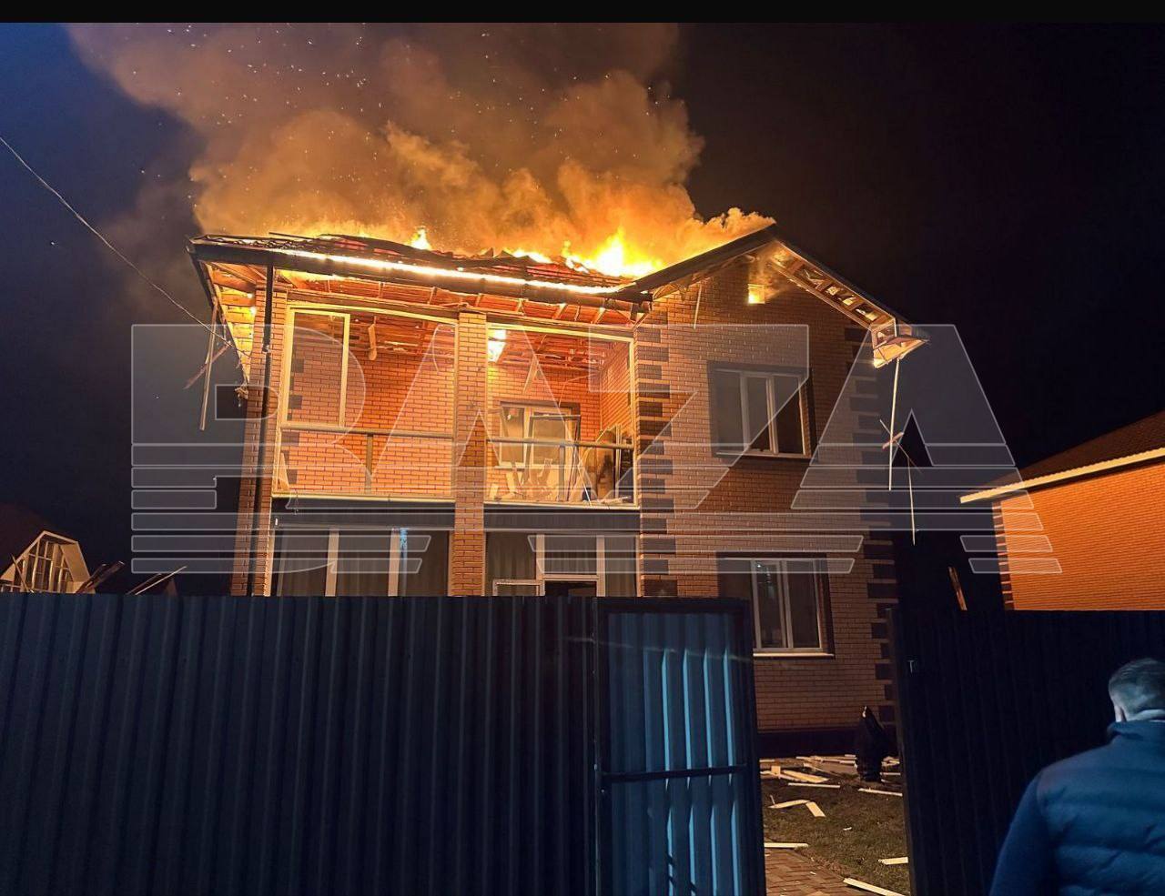 Попадание беспилотника в дом в Рамеменском, после этого там начался сильный пожар.