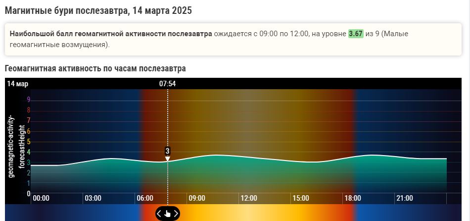 Геомагнитная обстановка : прогноз на 13 марта 2025 года