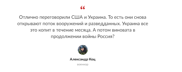 С мнением Коц согласился и другой военкор ,Борис Рожин. Он также подчеркнул, что переговоры станут «классической разводкой» в стиле бывших минских договоренностей. После того если возможно начнется 30 дневное перемирие Киев обманным путем будет копить боеприпасы и восстанавливать потрепанные бригады. Ведь США к ним проявили благосклонность, сняли запрет на поставки военной помощи и разведданных.