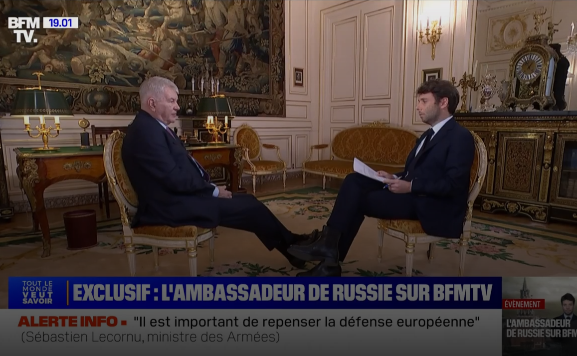 Доброго времени суток! Вчера французское издание BFMTV опубликовало интервью с послом России во Франции, Алексеем Мешковым. Главное темой, естественно была Украина и условия России для прекращения боевых действий.