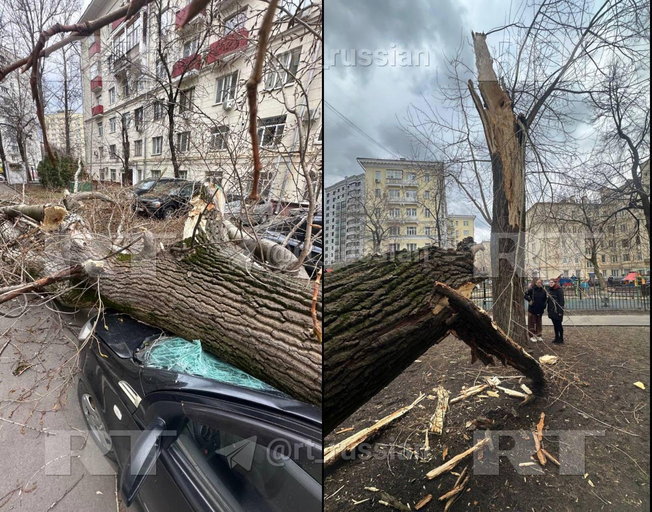Ураган 14 марта в Москве, из-за сильного ветра падали деревья и срывало кровлю с крыш
