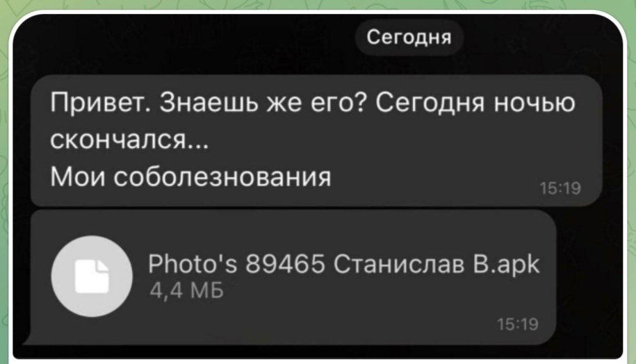 О новой схеме мошенничества рассказал мой знакомый из другого микрорайона нашего Советского района. Микрорайон Шлюз располагается на берегу Обского моря и там проживает порядка 10 тысяч населения. Есть свой чат микрорайона - «У нас на Шлюзе». 13 марта в чате распространили информацию, что к жителям стали поступать через Telegram сообщения, что вот только недавно ушёл из жизни «знакомый» данного человека и к сообщению прикреплена фотография умершего. Человек переходит по ссылке посмотреть фото и автоматически закачивает «вредоносный» файл. При скачивании файла мошенники получают доступ к персональным данным и используют их для опустошения «кошелька».