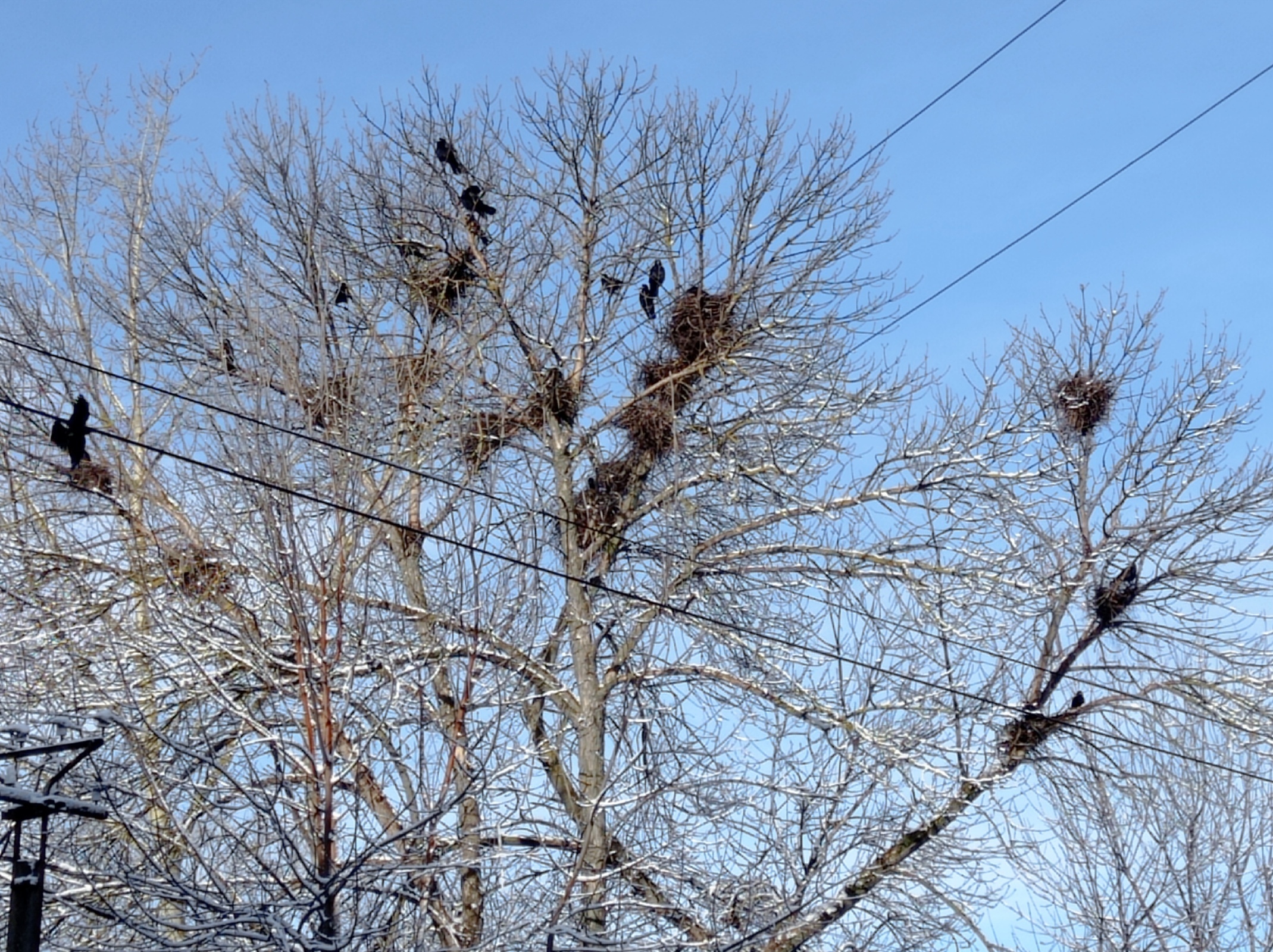 Проходя под деревьями, которые птицы уже несколько лет облюбовали себе для гнезд, внезапно, дошло. Звуки! Кругом раздавались звуки строительства. Тюк-тюк... С деревьев на тротуар падали щепочки... Шлеп-шлеп...