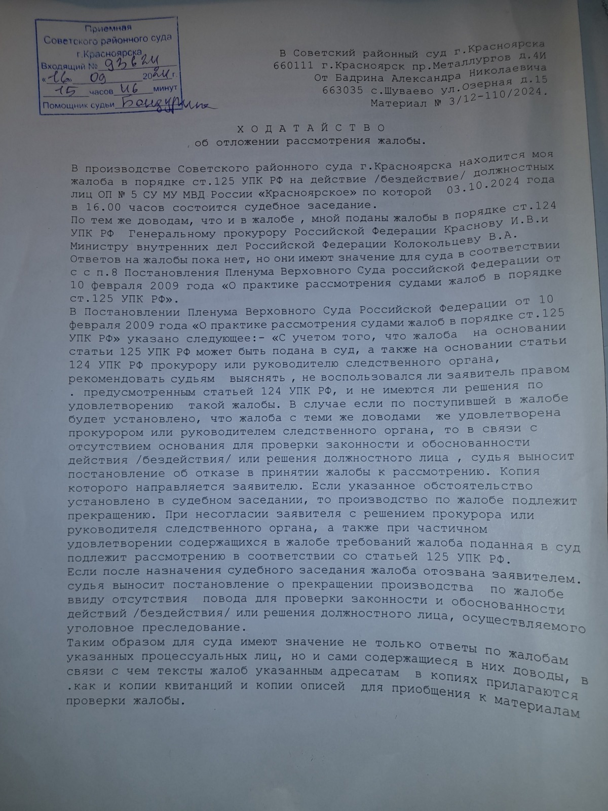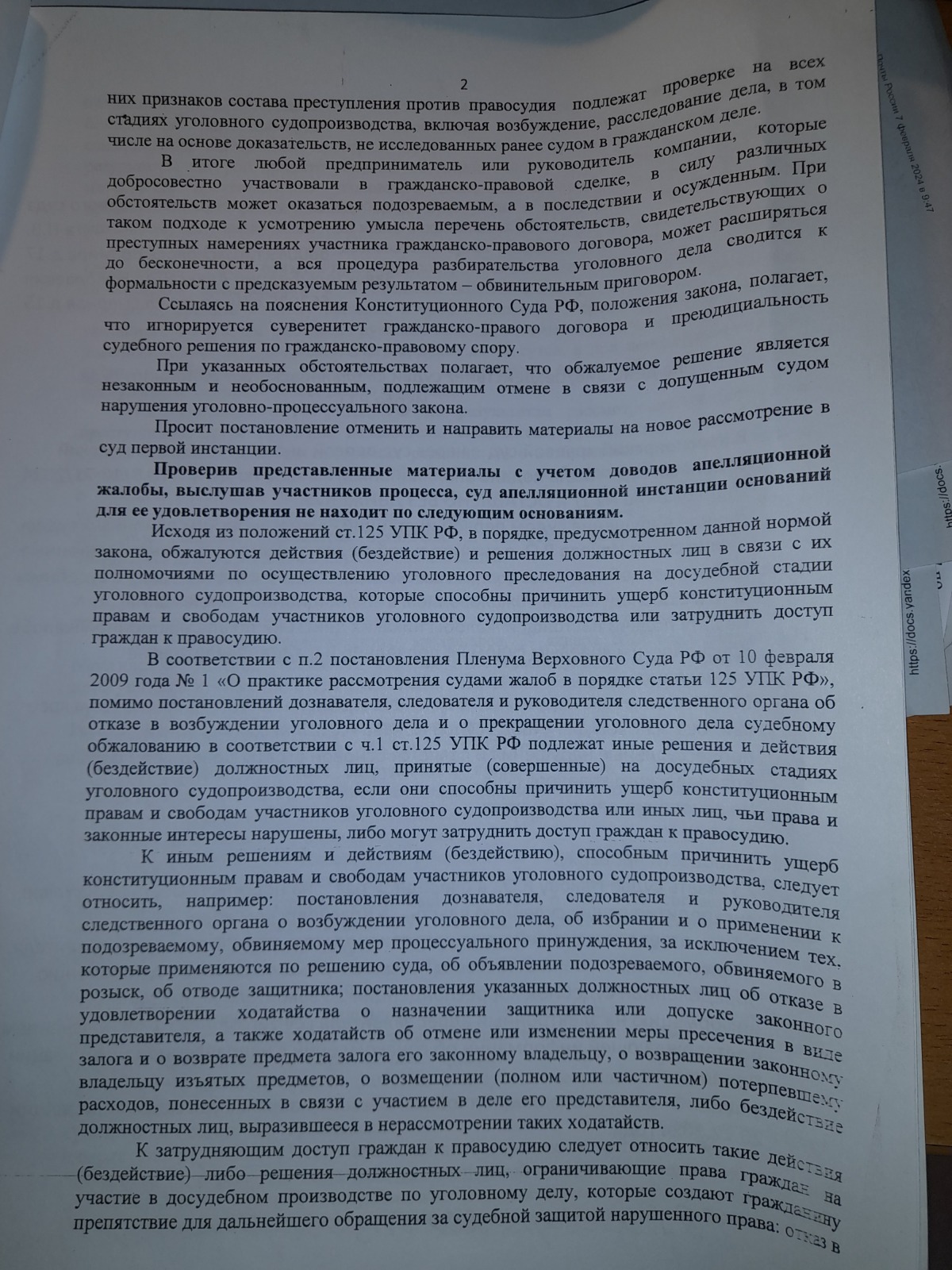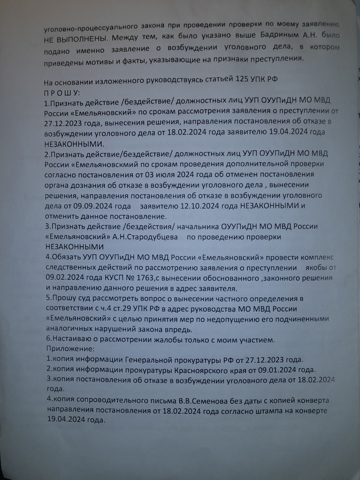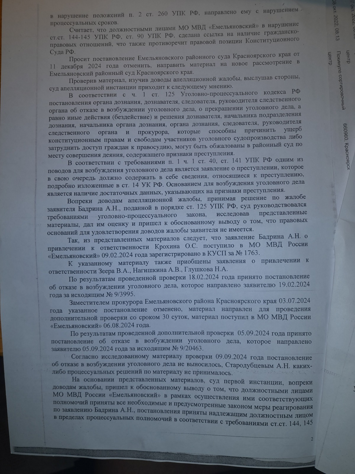 и вынесен вот такой судебный акт- полная галиматья особенно по вторичному отказу в возбуждении уголовного дела 09.09.2024 года, которое непонятно ВЫНОСИЛОСЬ ИЛИ НЕТ?
