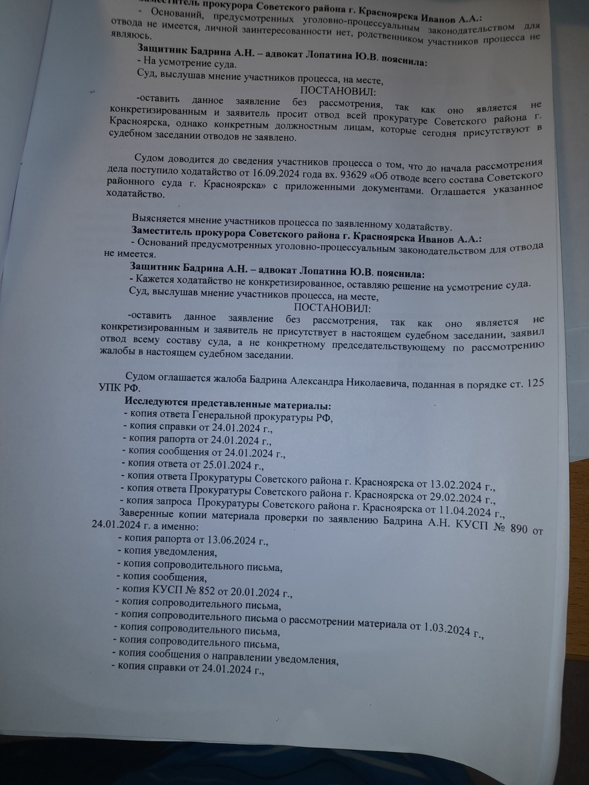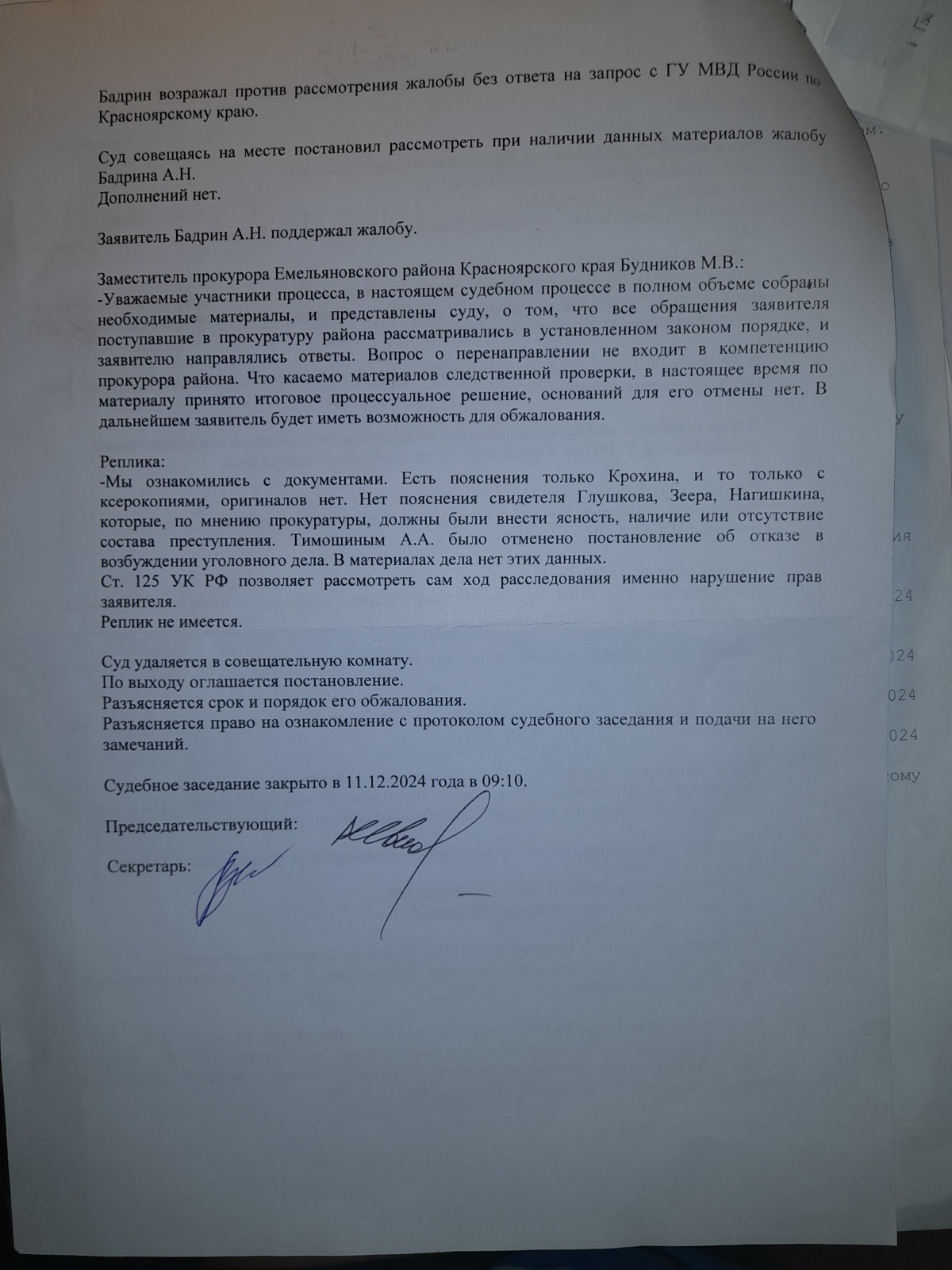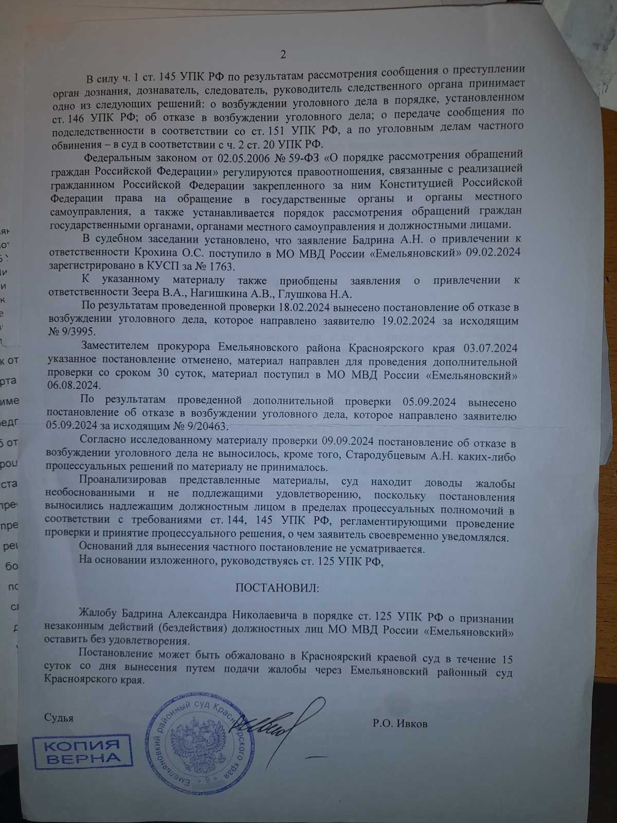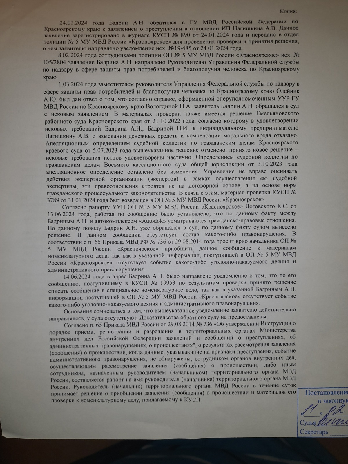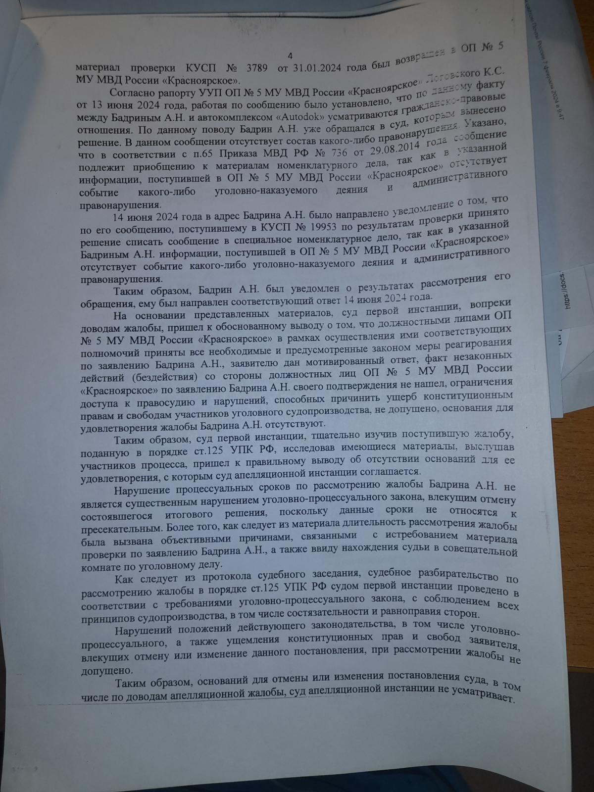 и вынесен вот такой судебный акт- полная галиматья особенно по вторичному отказу в возбуждении уголовного дела 09.09.2024 года, которое непонятно ВЫНОСИЛОСЬ ИЛИ НЕТ?