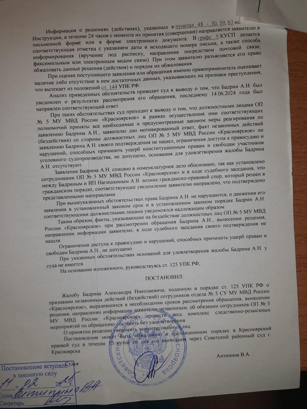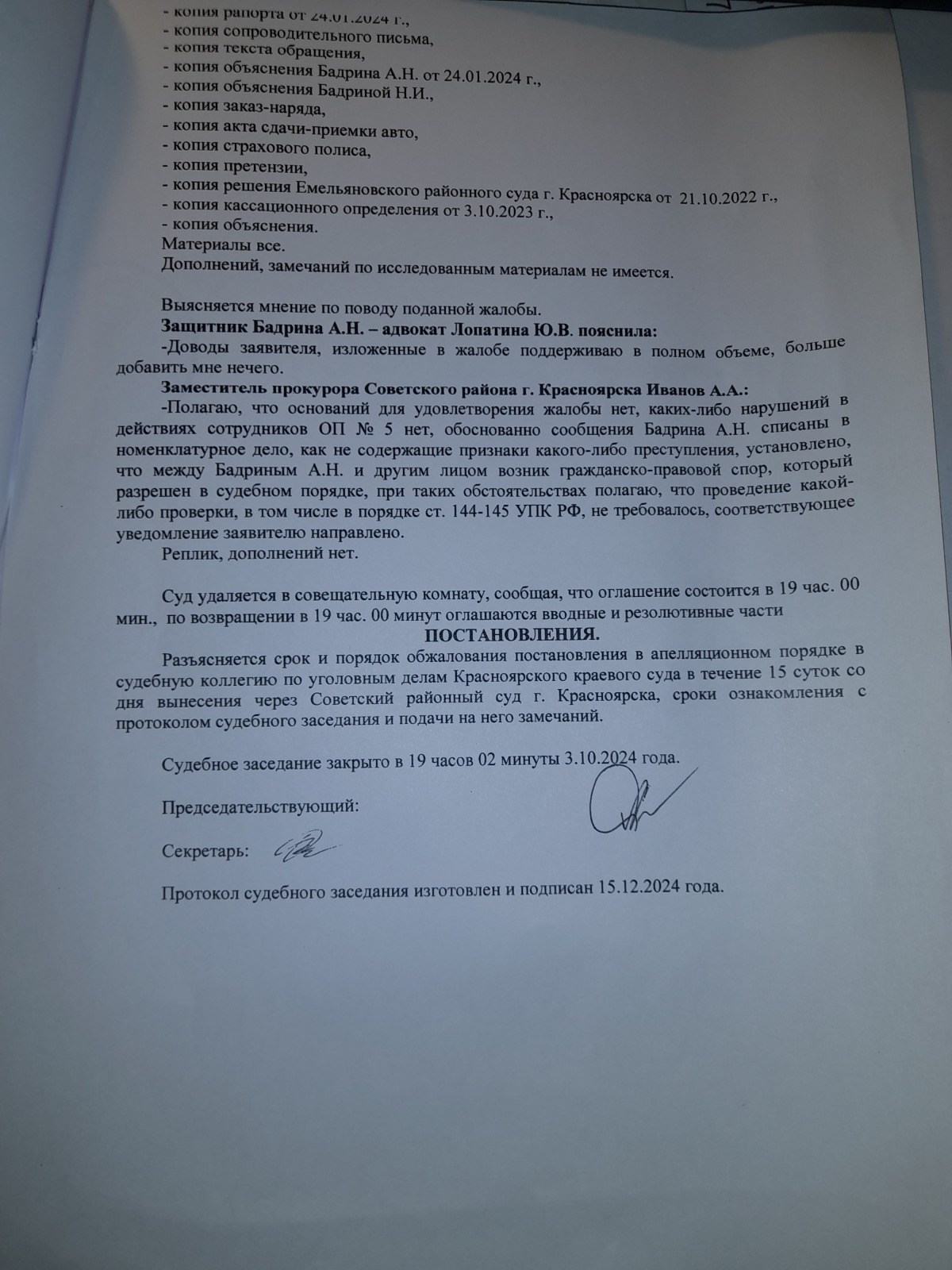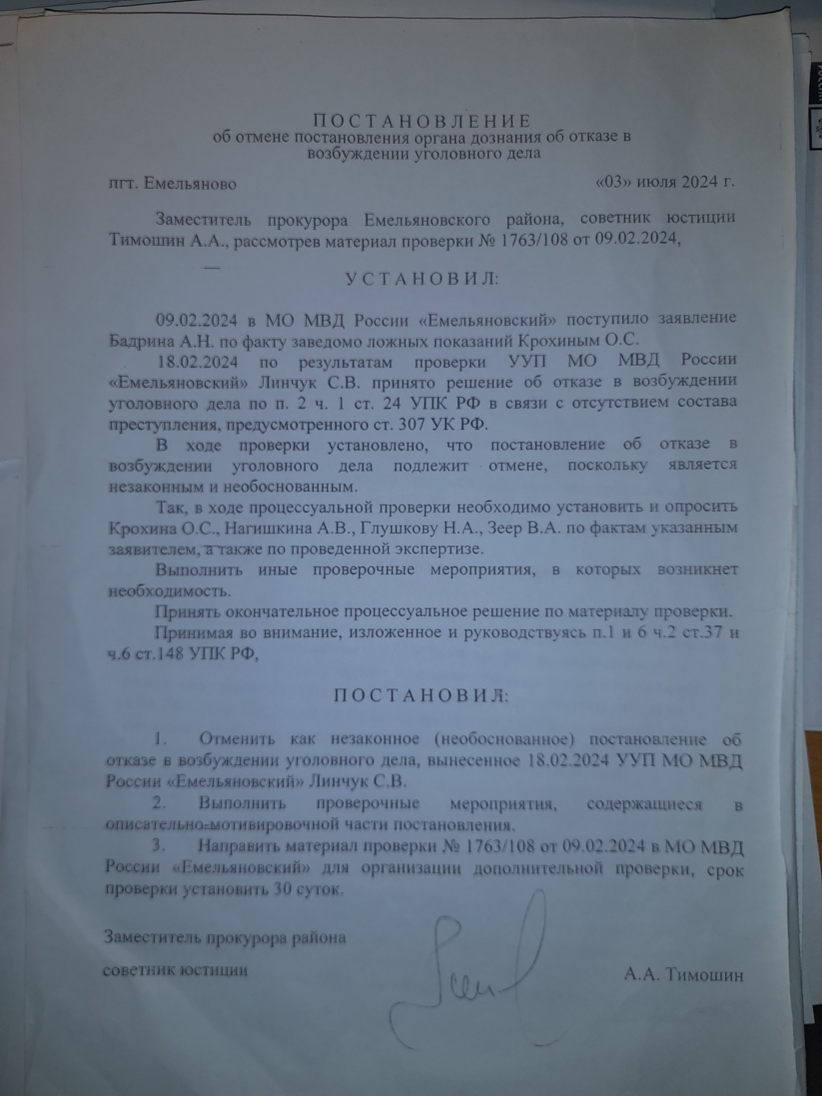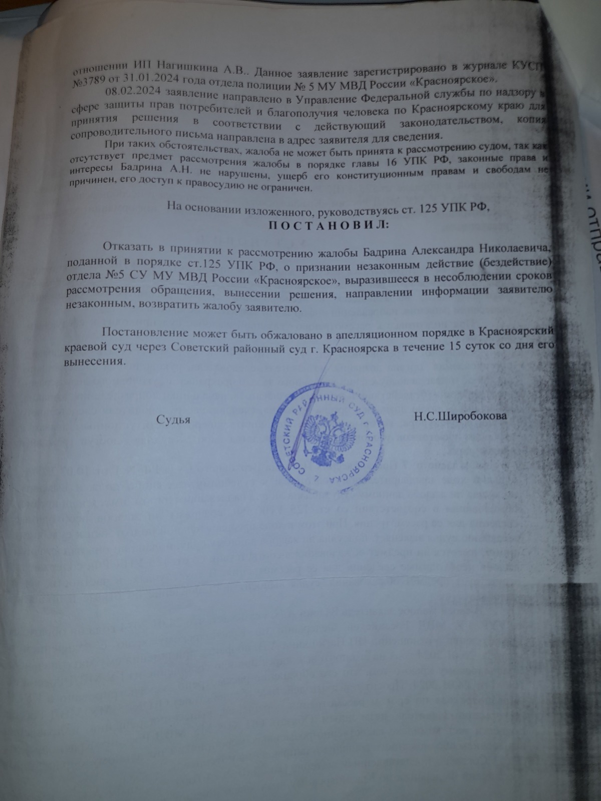 и вынесен вот такой судебный акт- полная галиматья особенно по вторичному отказу в возбуждении уголовного дела 09.09.2024 года, которое непонятно ВЫНОСИЛОСЬ ИЛИ НЕТ?