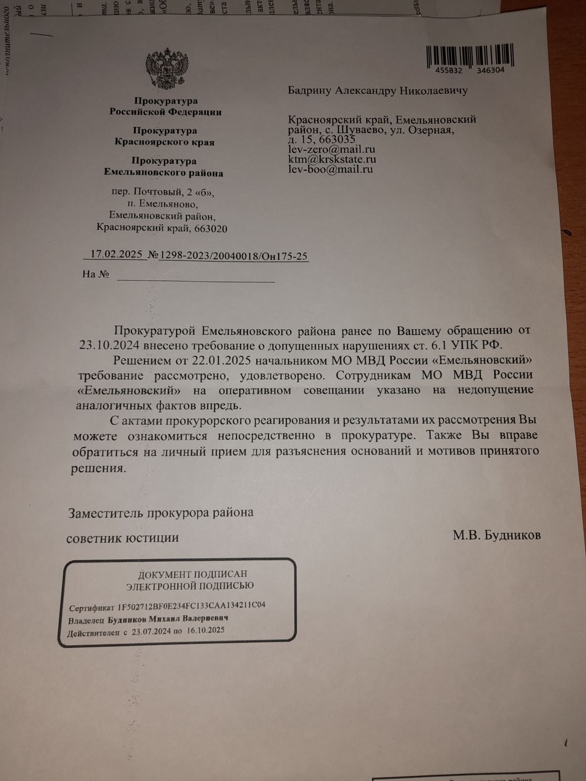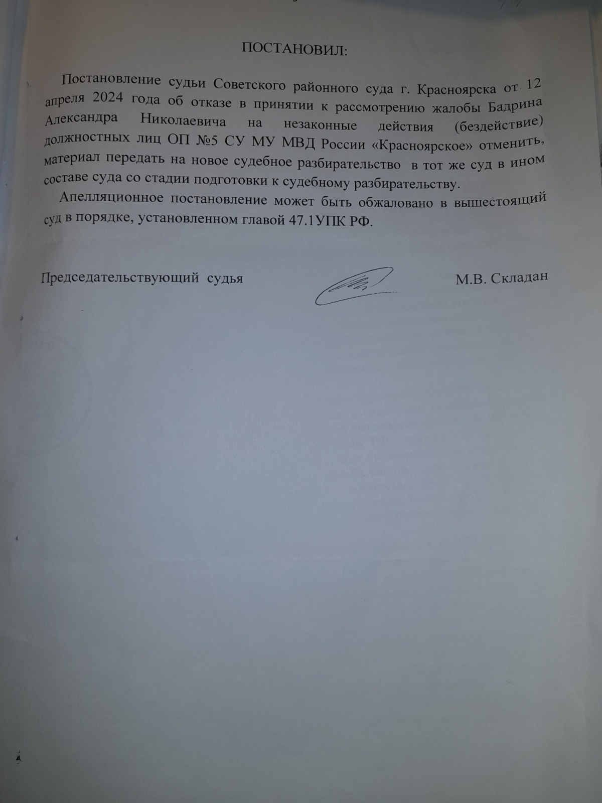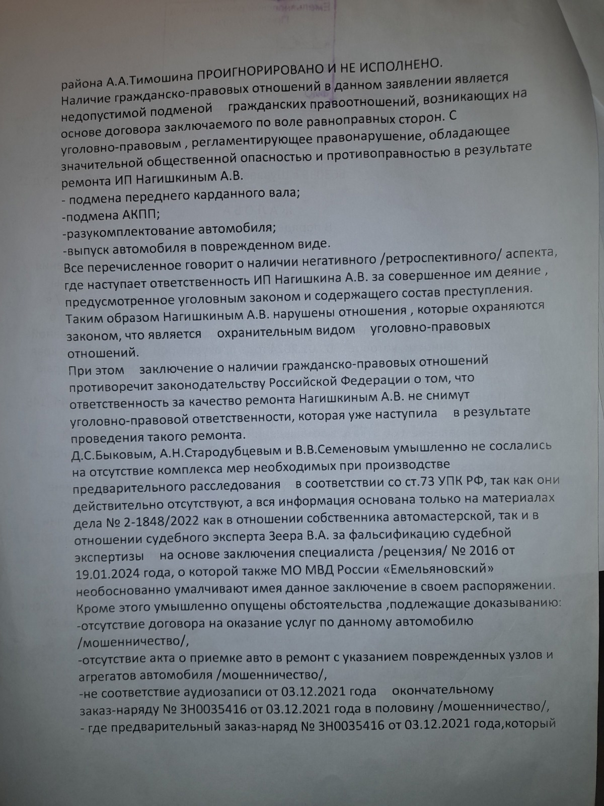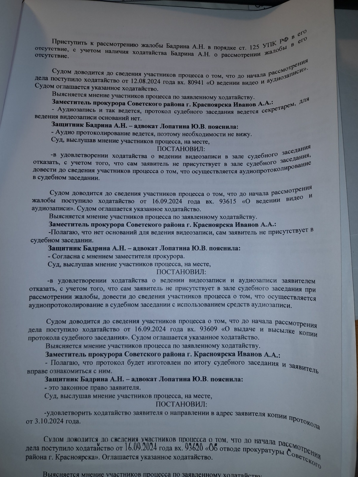 и вынесен вот такой судебный акт- полная галиматья особенно по вторичному отказу в возбуждении уголовного дела 09.09.2024 года, которое непонятно ВЫНОСИЛОСЬ ИЛИ НЕТ?