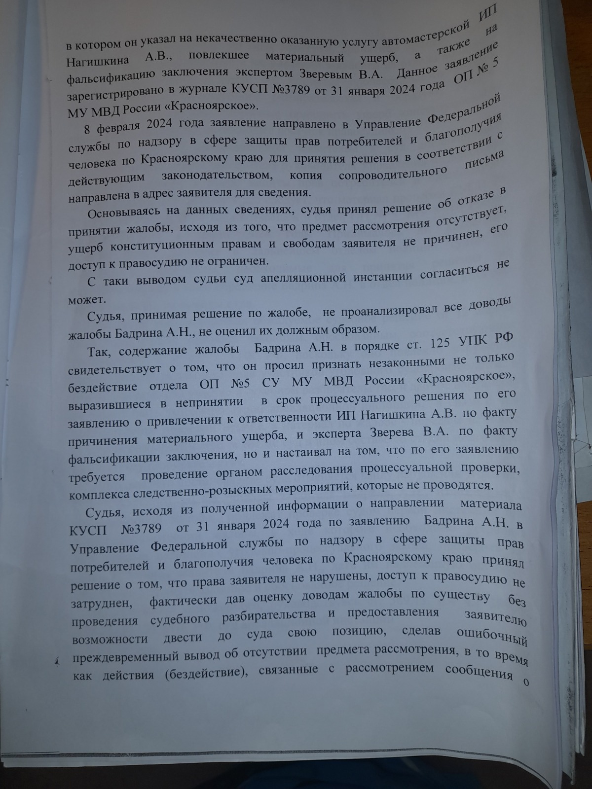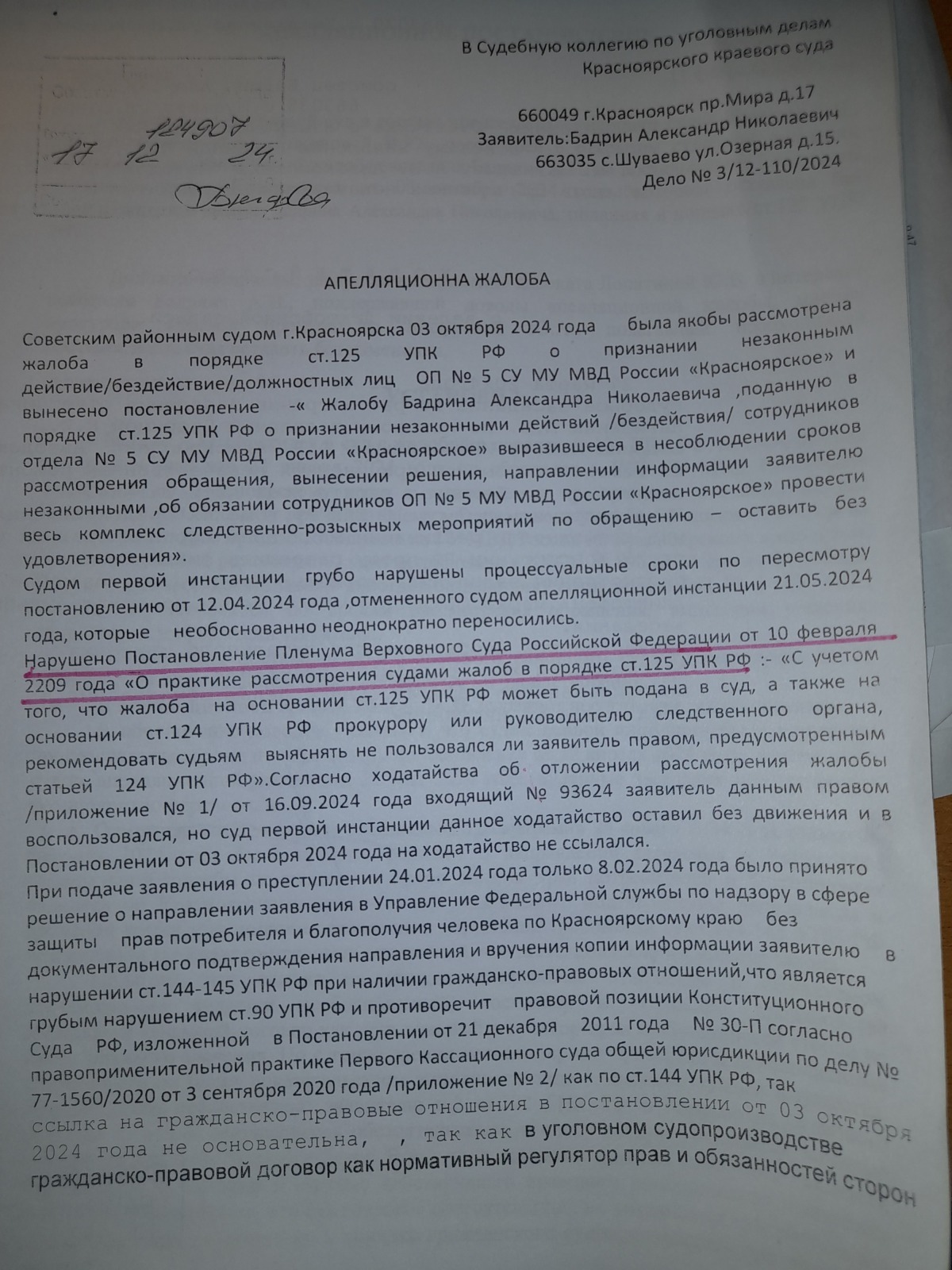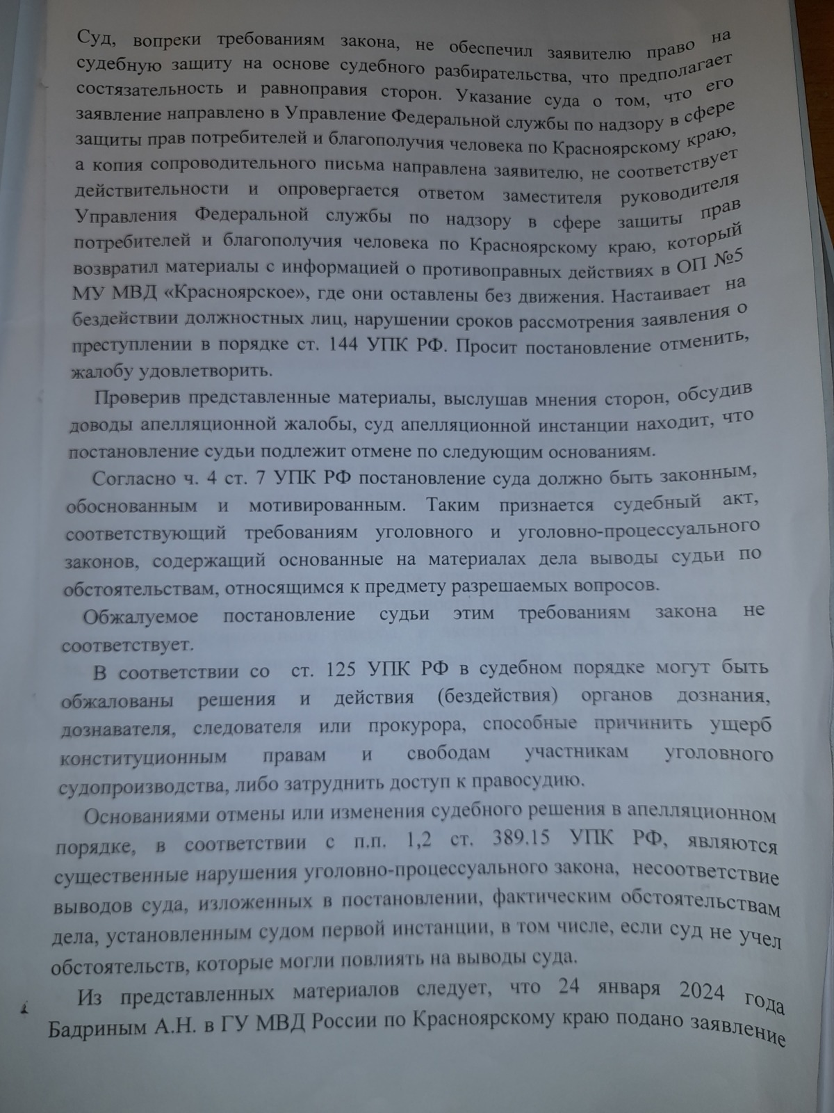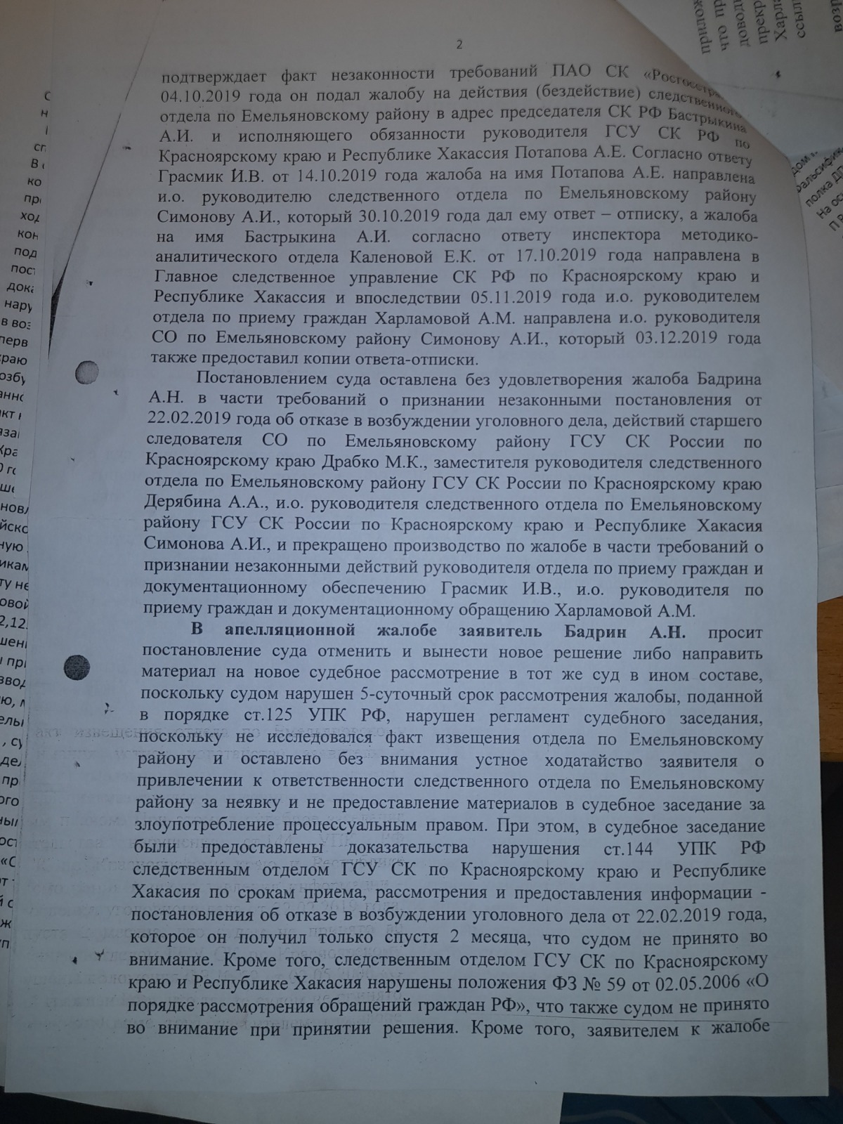 подана апелляционная жалоба и согласно апелляционного постановления сложилось впечатление, что правосудие в Красноярском крае существует