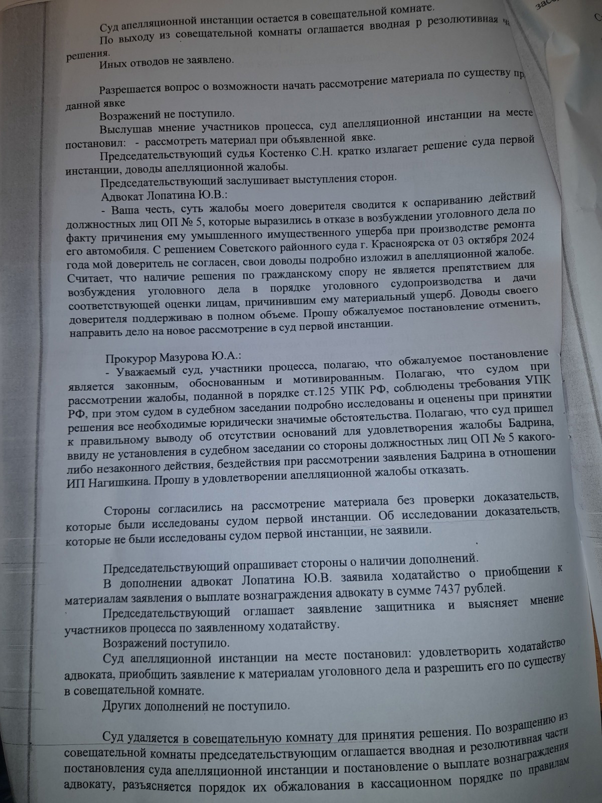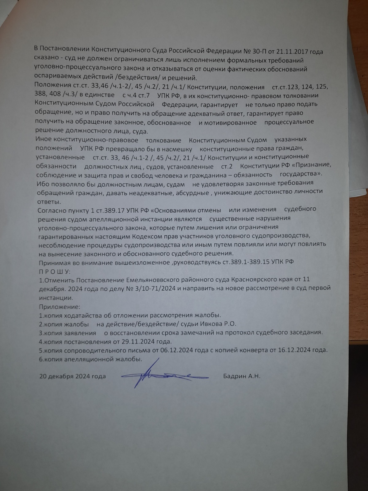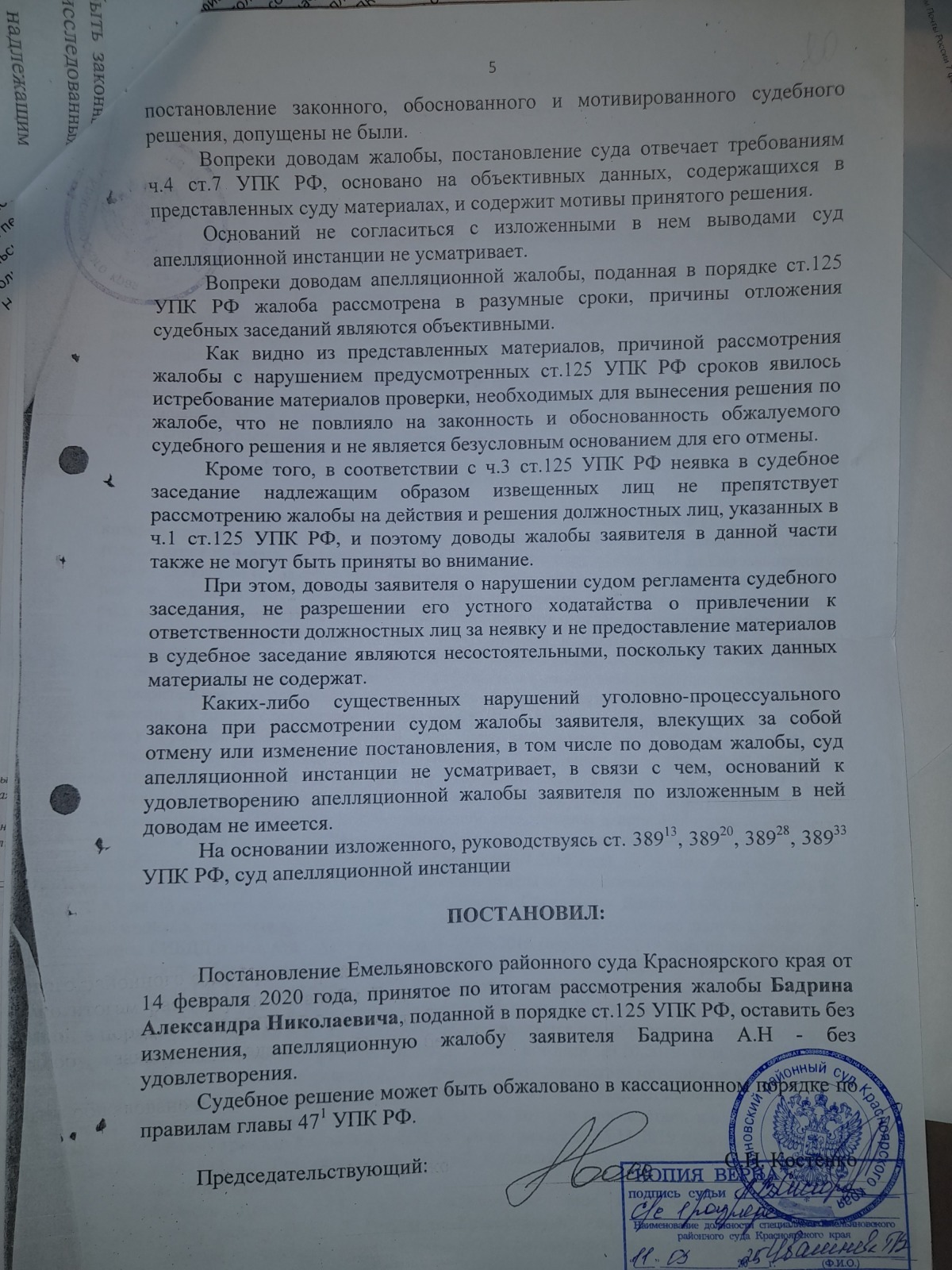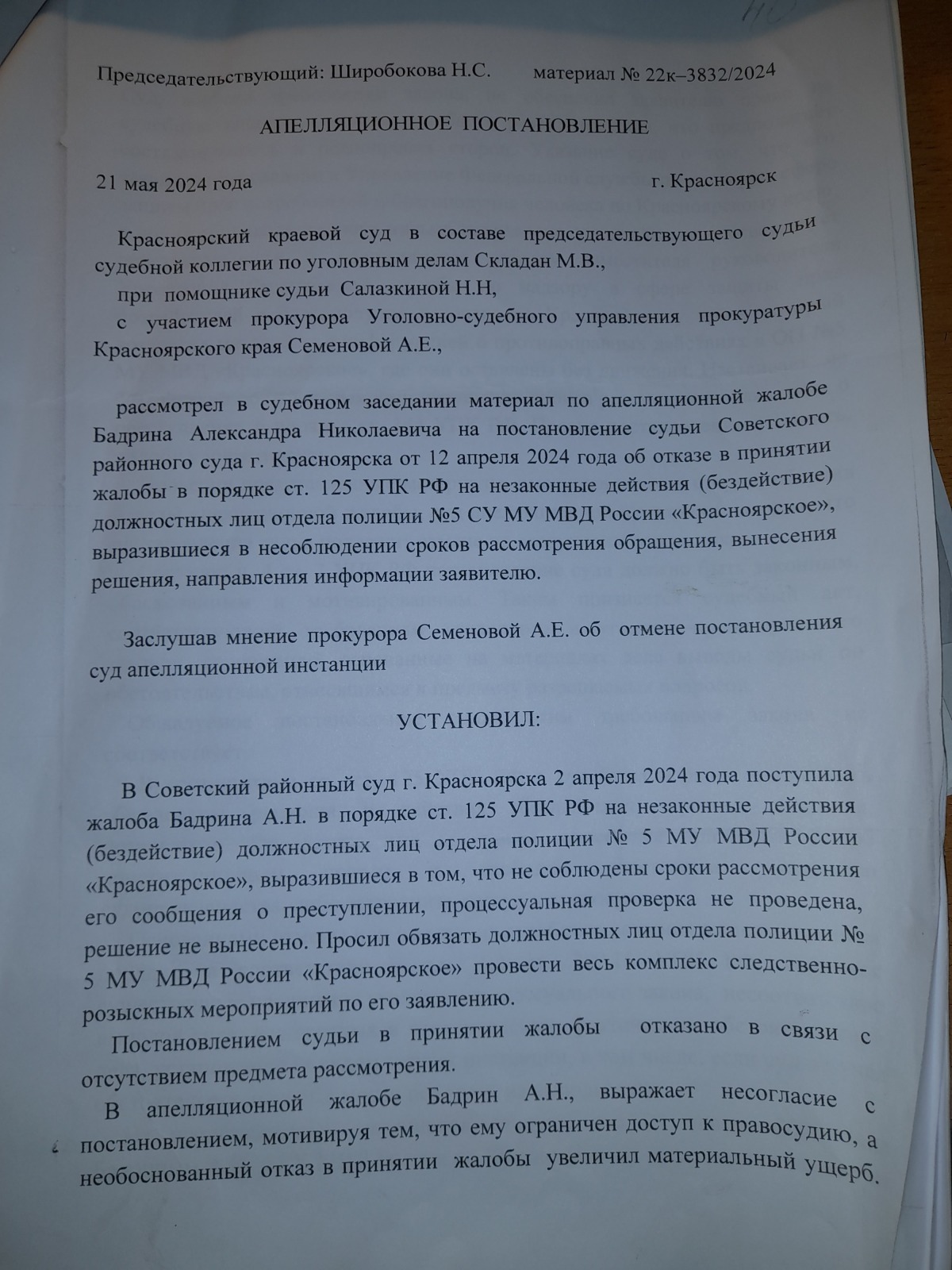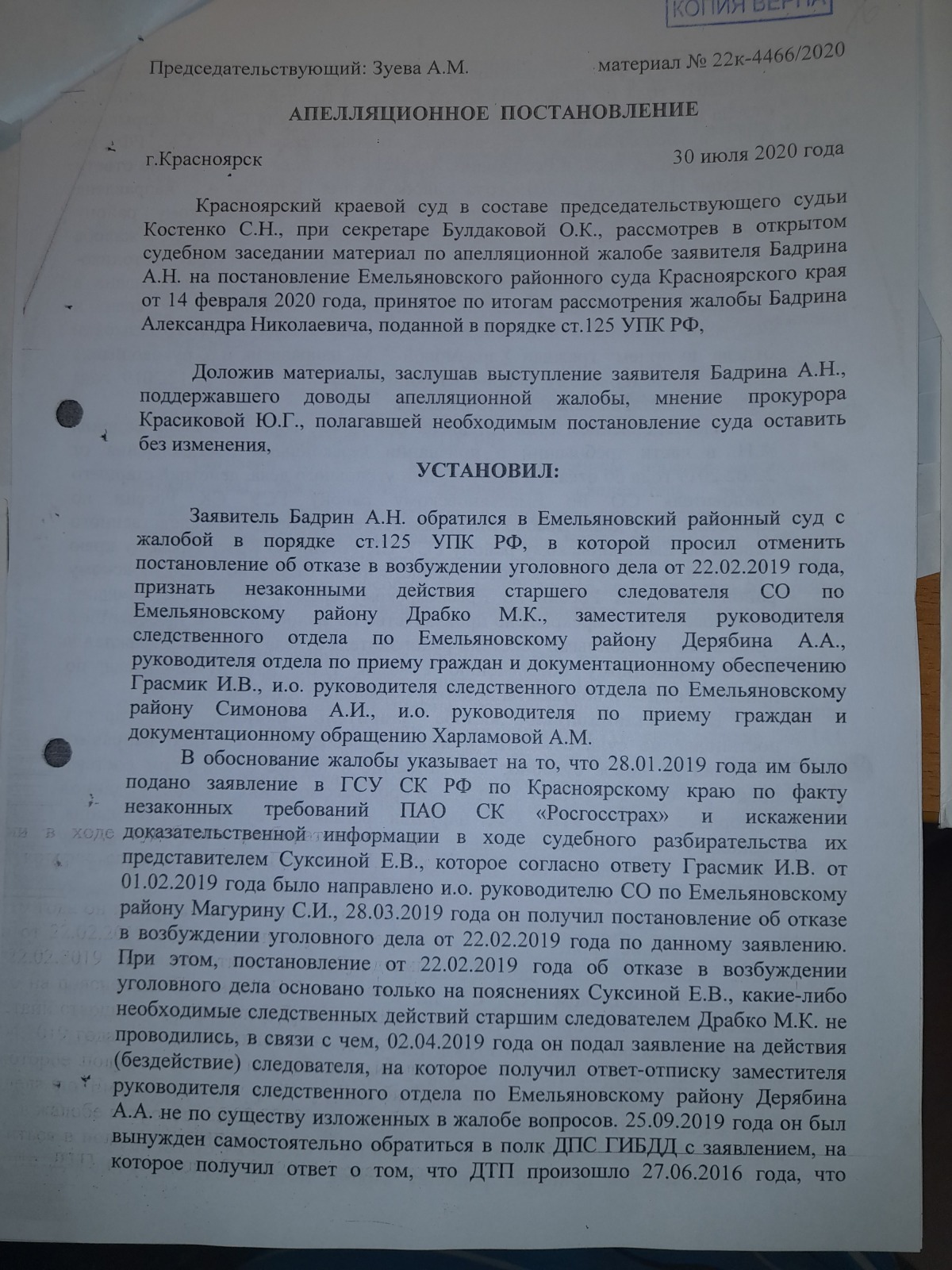 подана апелляционная жалоба и согласно апелляционного постановления сложилось впечатление, что правосудие в Красноярском крае существует