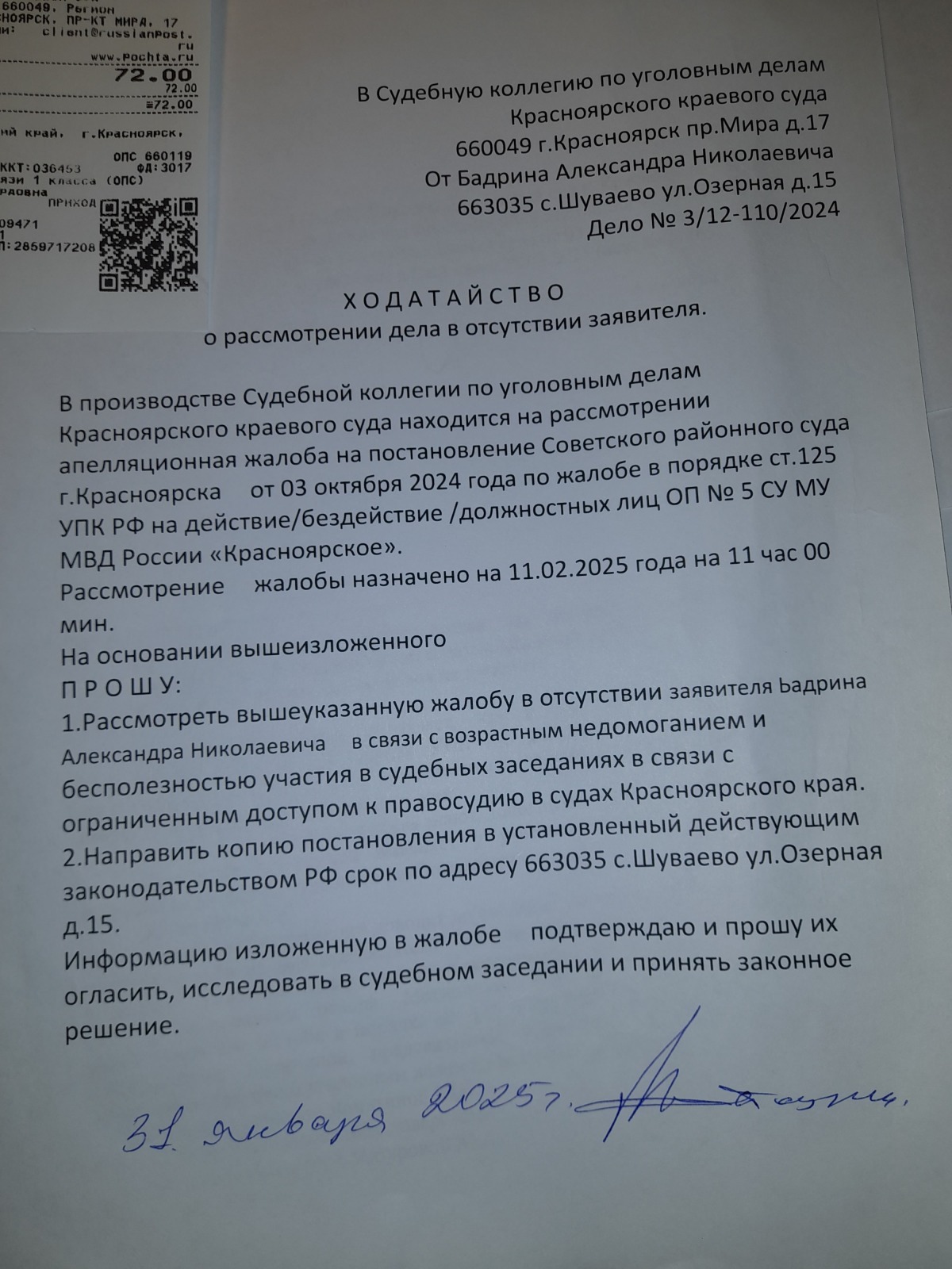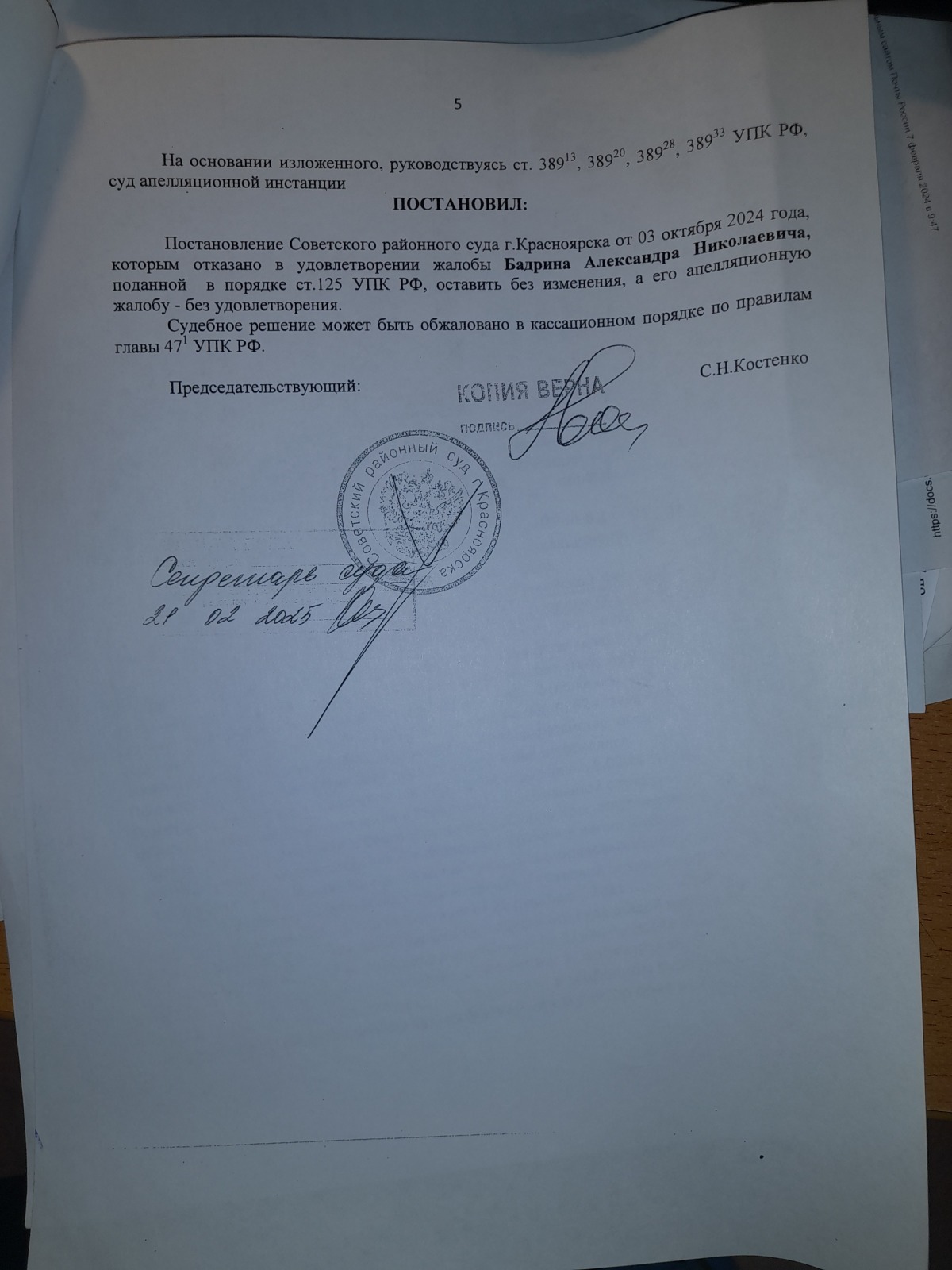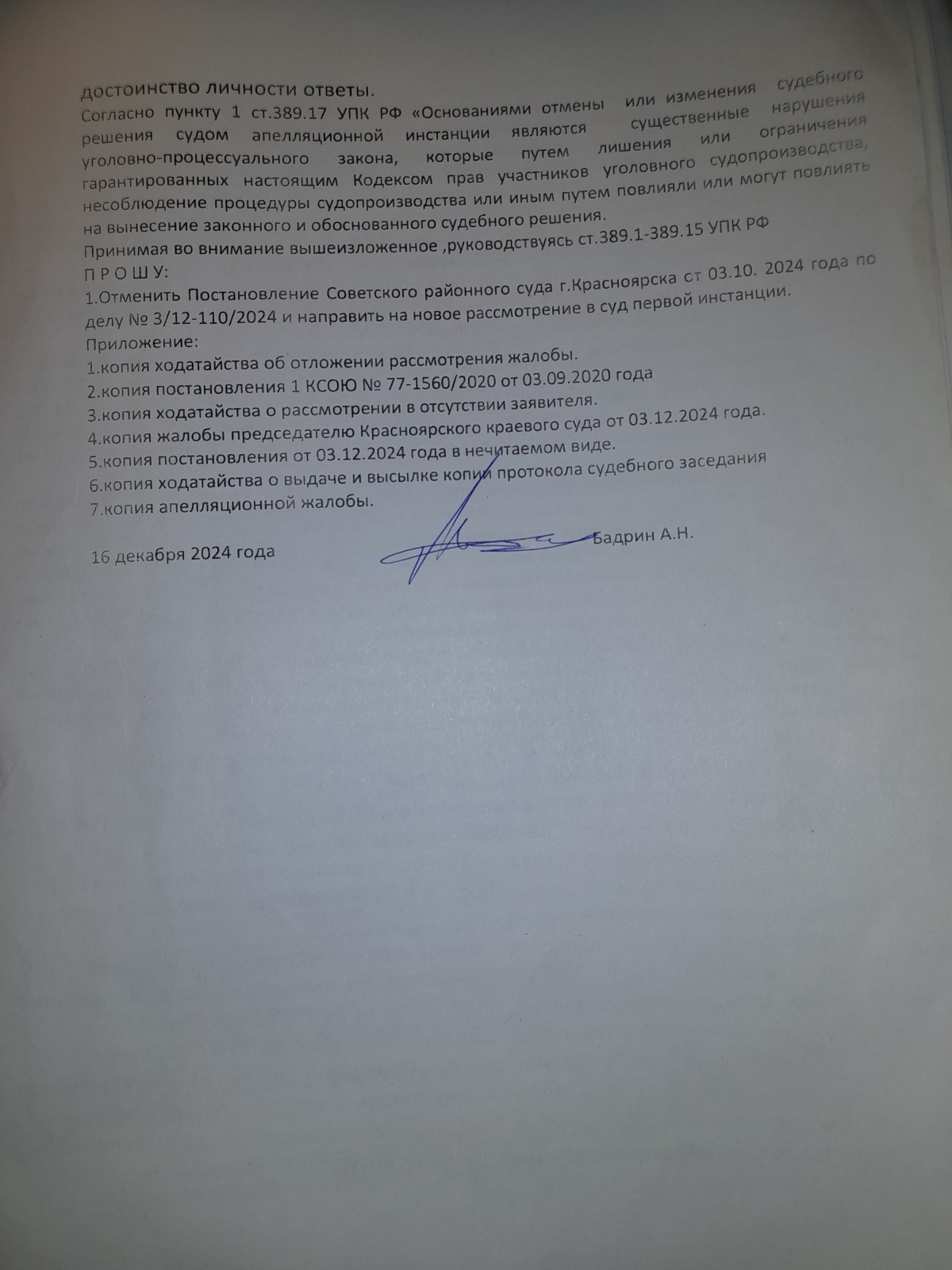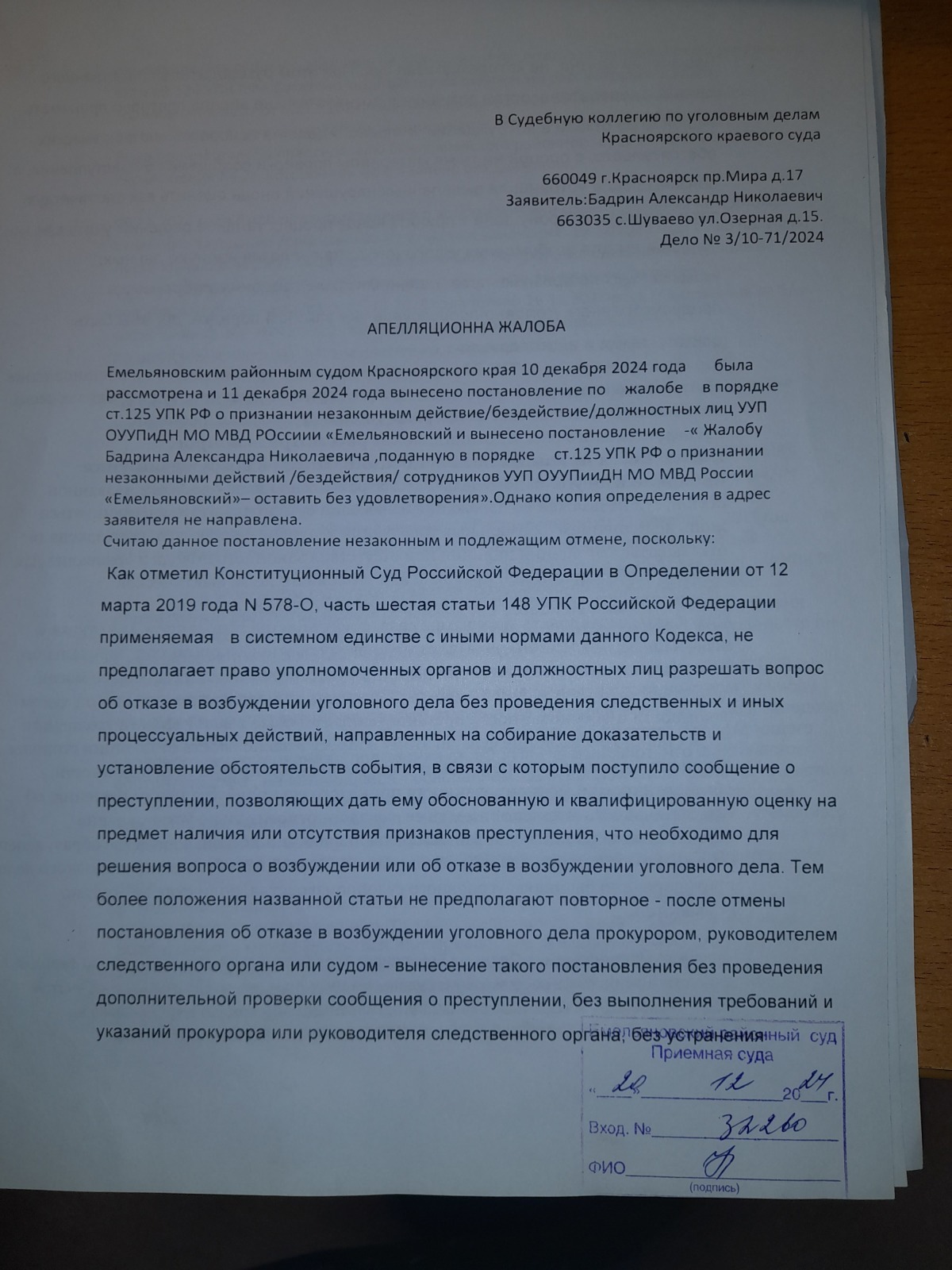 подана апелляционная жалоба и согласно апелляционного постановления сложилось впечатление, что правосудие в Красноярском крае существует