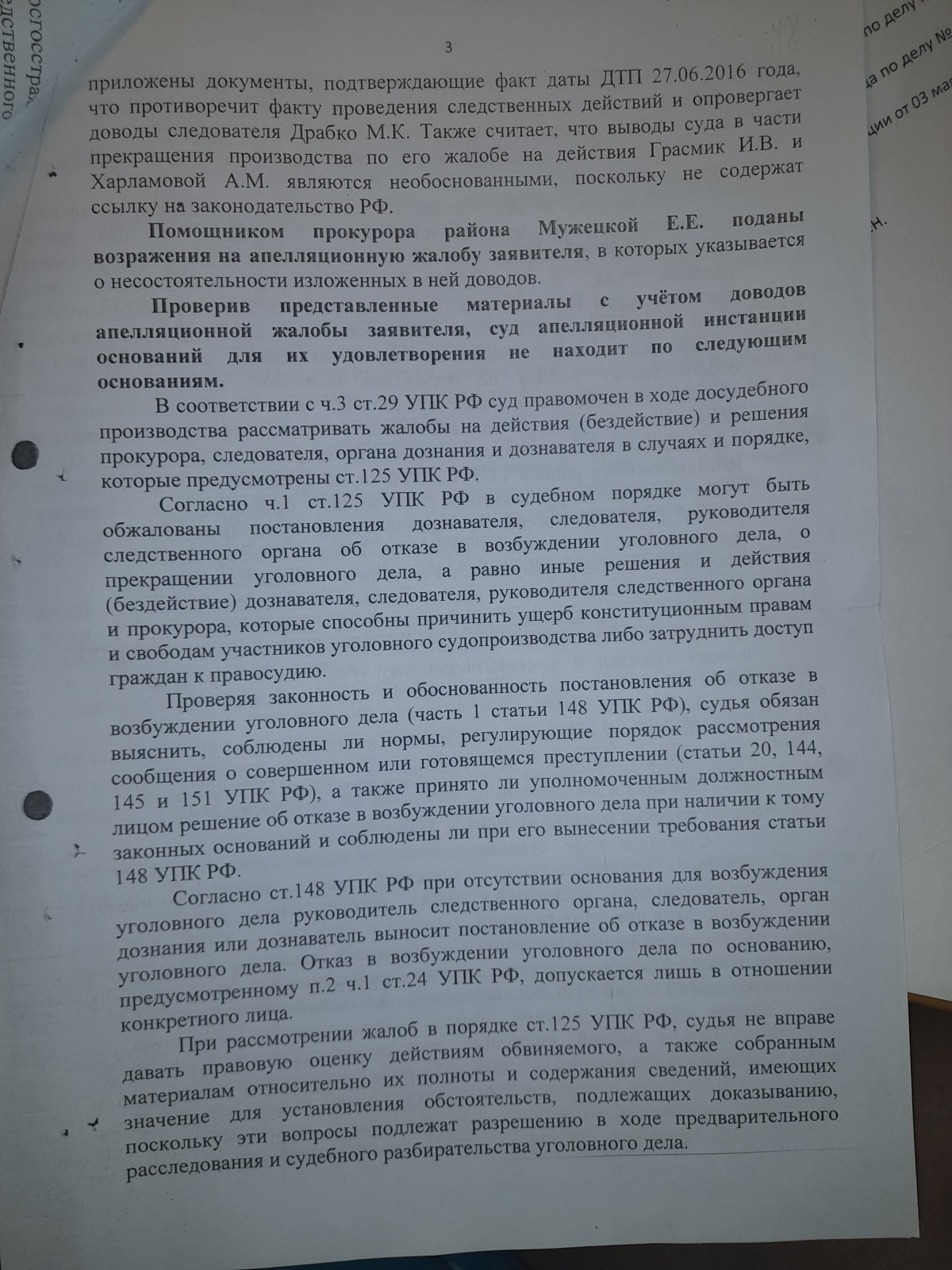 Уважаемый читатель видите, что и стряпчий апелляции Костенко С.Н. нагнул всех и вся. Данный стряпчий ужу имел честь отличится в другом деле.Ознакомьтесь на предмет соответствия ст.144-145 УПК РФ по срокам