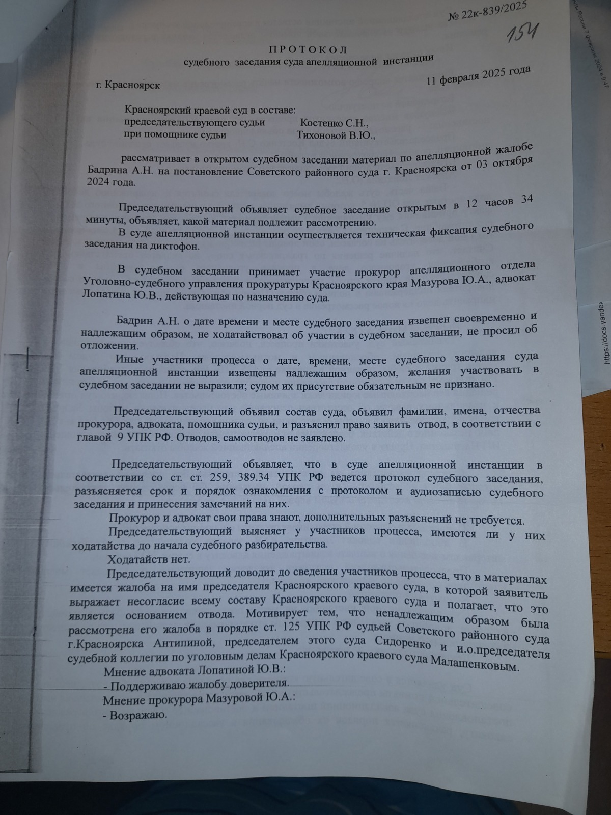 читаем копию протокола судебного заседания