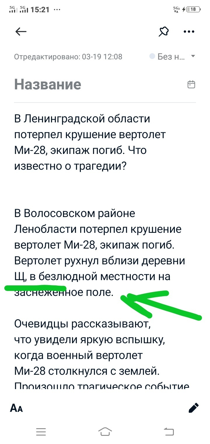Терминологию также смотрела из источника новости, что-то составлено из текста сразу по памяти (у меня фотографическая память). Но вот к примеру, названия деревень или пунктов я могу не запомнить целиком, а только первую букву, вот мой текст в редакторе блокнота, я пишу его всегда сначала в блокноте телефона быстро, название пункта написала просто одной буквой Щ. Что уже говорит о том,что не нейросеть писала ))) Название деревни потом при публикации снова зашла, посмотрела и уже отредактировала в редакторе на сайте .