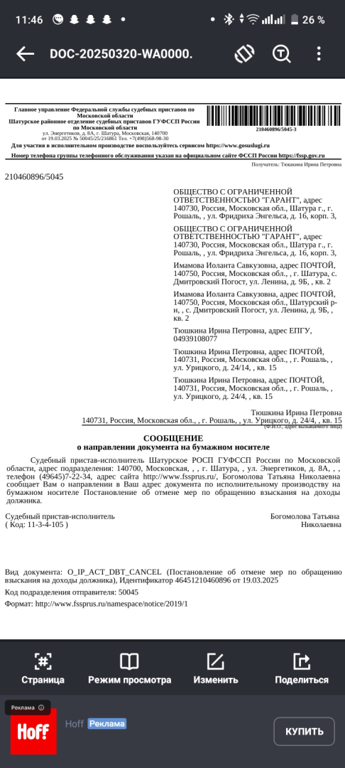 Добрый вечер. Подскажите, пожалуйста, что этот документ означает?